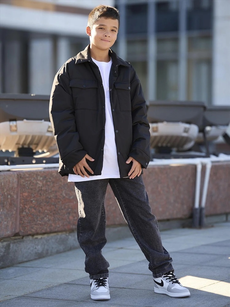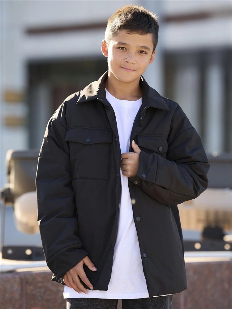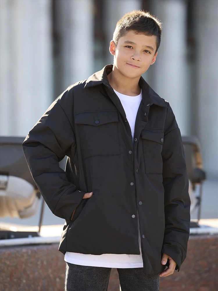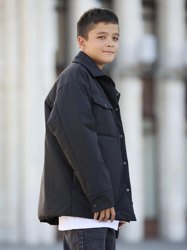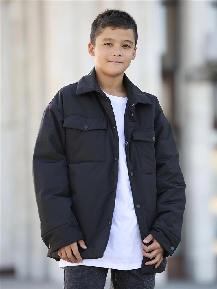 Демисезонная куртка-рубашка для мальчика Фрэне на утеплителе 120 г/м² с подкладом из прочной дышащей таффеты. Свободная модель с спущенной линией плеча и накладными карманами. Выполнена в стиле оверсайз с рубашечным кроем на пуговицах (куртка-пиджак) и отложенным воротником. Подходит для носки при температуре от 0 до +15 градусов. Легкая, воздушная и не продувается.