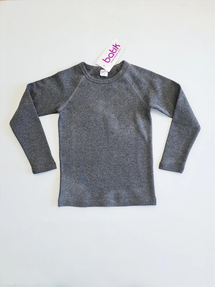 Лонгслив (пуловер) для мальчика с длинными рукавами-реглан. Горловина круглая, окантована бейкой из основного полотна.