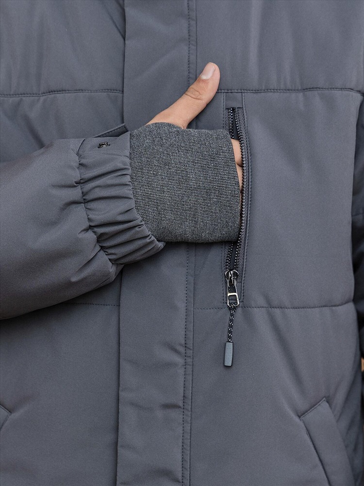 "Хэд" – стильная удлинённая парка для мальчика в современном цвете "олово". Металлический серый оттенок придаёт модели особый футуристичный вид, сохраняя все практические преимущества. Идеальный выбор для активных зимних прогулок.