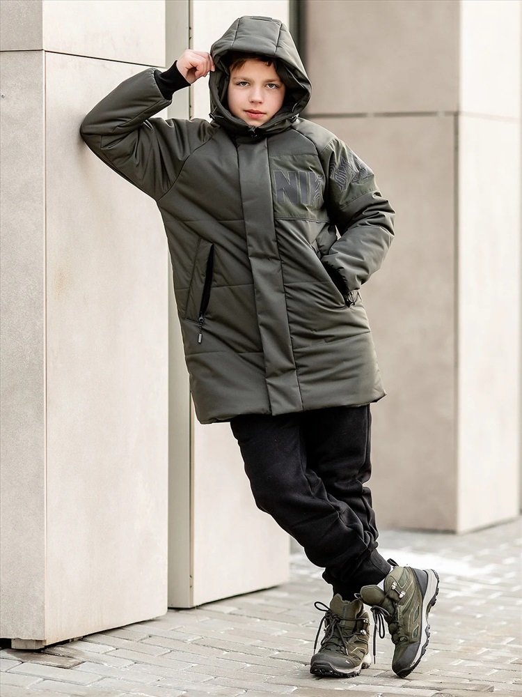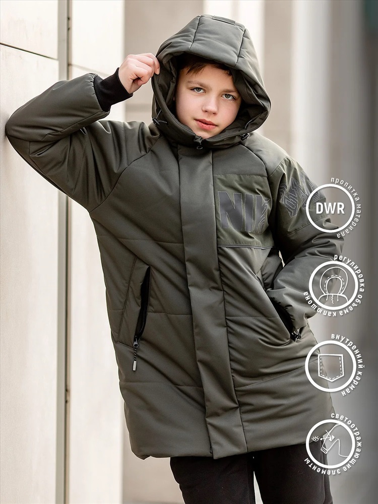 Парка для мальчика Клаус демисезонная в хаки расцветке с рукавами кроя реглан, которые не сковывавают движения. Для защиты от ветра имеется ветрозащитная планка поверх молнии. Парка из мембранной ткани имеет шрифтовой декор. Рукава по низу имеют трикотажный манжет, капюшон регулируется по объему. Боковые карманы на молнии.