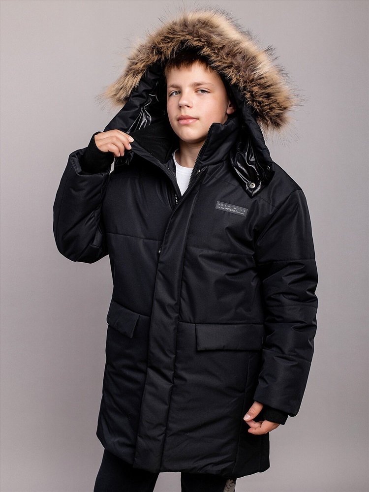 Парка для мальчика Лоренсо утепленная из мембраны в черной расцветке. Удобная и теплая парка на молнии с ветрозащитной планкой. Утепленная парка со светоотражающими элементами для мальчиков сшита из прочной водонепроницаемой ткани, хорошо защищающей от ветра и холода. Высокотехнологичный утеплитель 270 гр: лёгкий, гипоаллергенный и износоустойчивый материал, который хорошо сохраняет тепло. Подклад микрофлис. Прямой силуэт. Несъемный капюшон с искусственным мехом на кнопках.