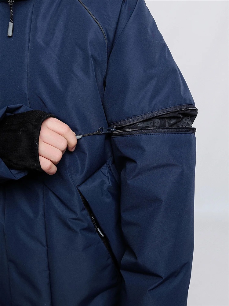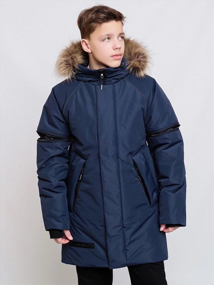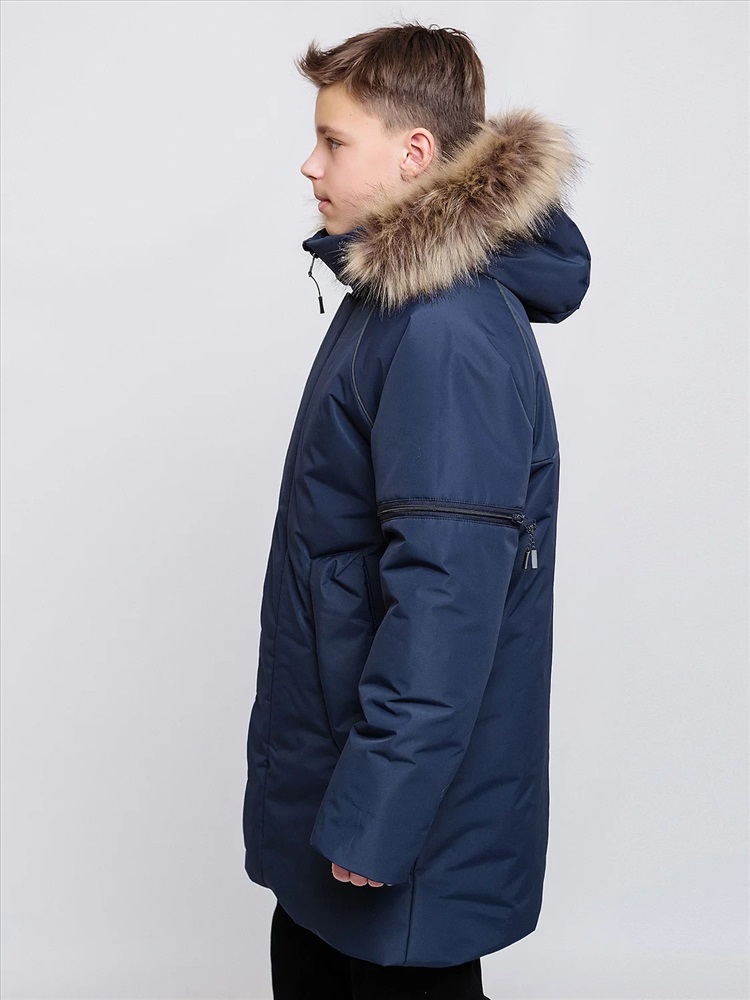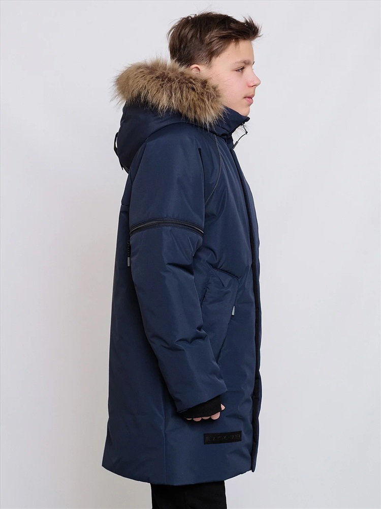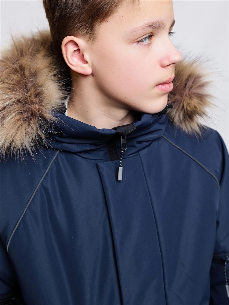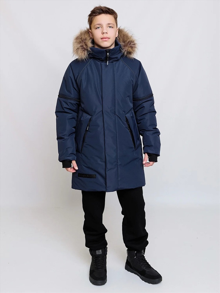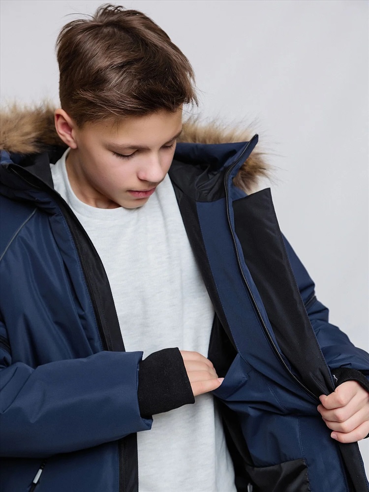 Парка для мальчика Трести в синем цвете выполнена из плотной ткани с мембранным покрытием, которое защищает от ветра и влаги. Подклад полибрушед делает изделие очень теплым и легким, хорошо защищающим от снега и дождя. У парки крой рукава реглан, который не сковывает движения. Ветрозащитная внешняя планка на магнитах, трикотажные манжеты с прорезью под пальчик для большего тепла и комфорта, капюшон втачной с регулировкой и со съёмной опушкой на молнии. Несколько больших карманов на молнии. Светоотражающие элементы по принципу 360 градусов видимости обеспечат безопасность в темное время суток.