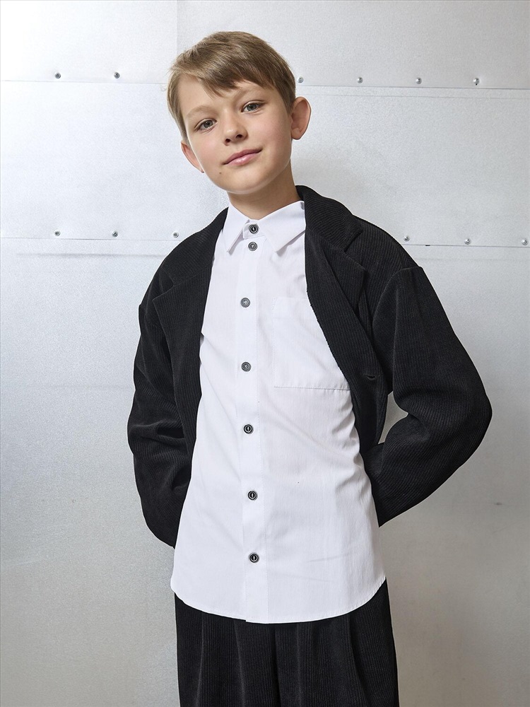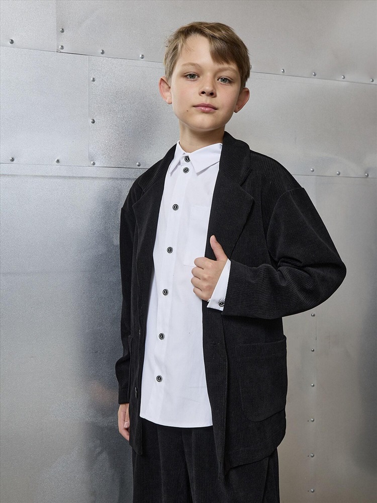 Стильный вельветовый пиджак для мальчика –идеальный баланс между повседневным комфортом и аккуратным силуэтом. Создан специально для юных джентльменов, которые ценят стиль и удобство. Благородная текстура с уютным ворсом для осенне-зимнего сезона. Двушовные эргономичные рукава не сковывают движения. Классический костюмный воротник и три пуговицы для аккуратного силуэта. Два накладных кармана для мелочей.
