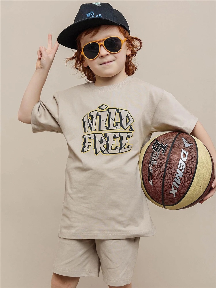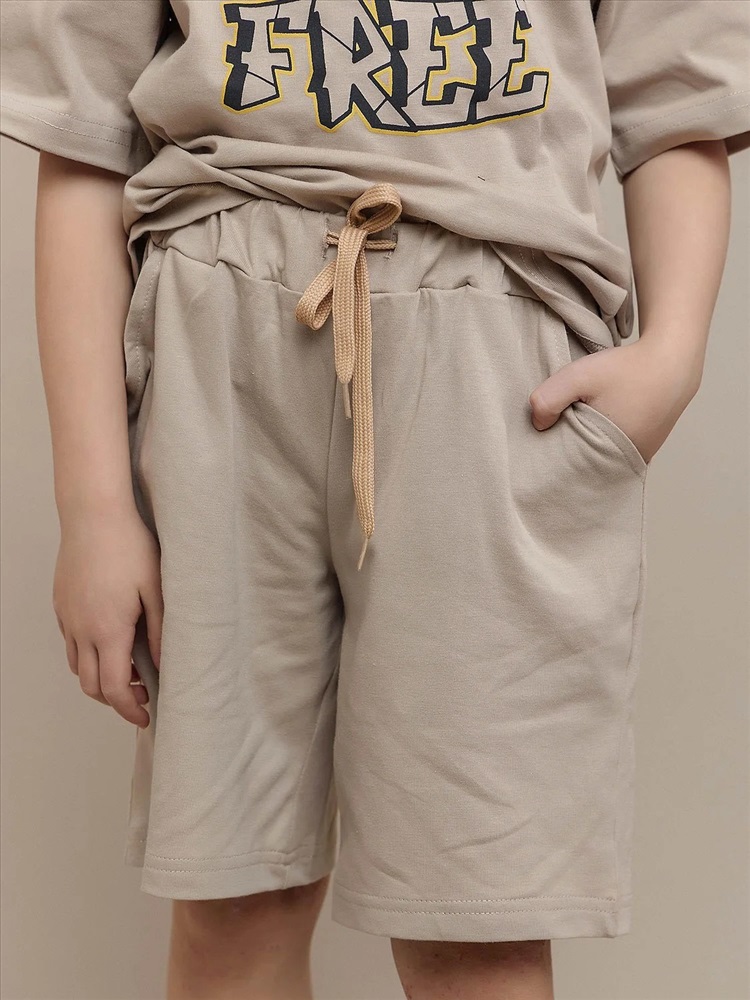 Шорты для мальчика трикотажные спортивные из супрема пенье. Модель отличается удобным поясом на эластичном шнурке, боковыми карманами, идеальной посадкой. Свободные шорты будут отлично сочетаться с худи и футболками.
