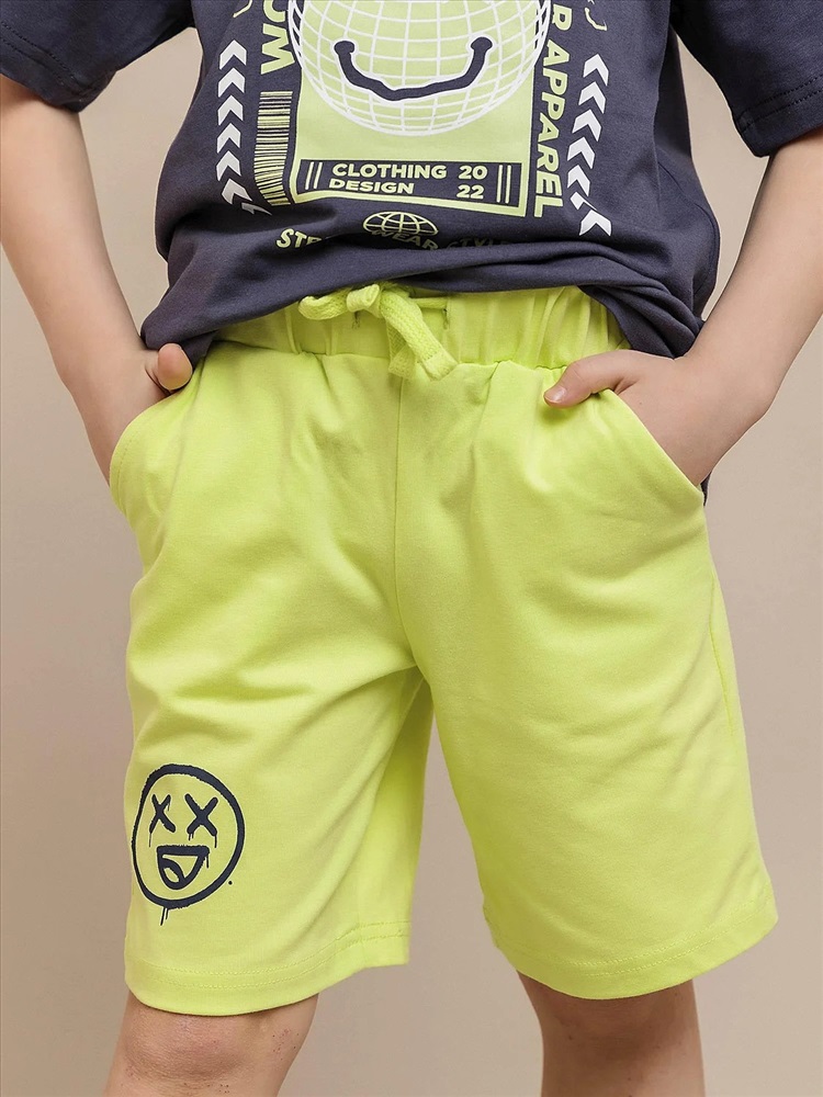 Шорты для мальчика трикотажные из ткани супрем пенье в салатовой расцветке. Модель отличается удобным широким поясом на мягкой резинке, а также боковыми карманами. Шорты для детей и подростков подойдут для спорта и повседневной носки.