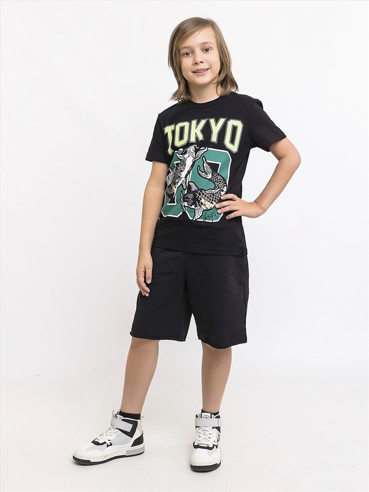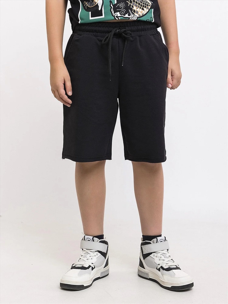 Удлиненные трикотажные летние шорты в черной расцветке из ткани футер 2х нитка - лучшее решение для детского и подросткового гардероба в любое время года. Базовые шорты спортивного стиля со шнурком в поясе. Легкая и приятная к телу дышащая ткань.