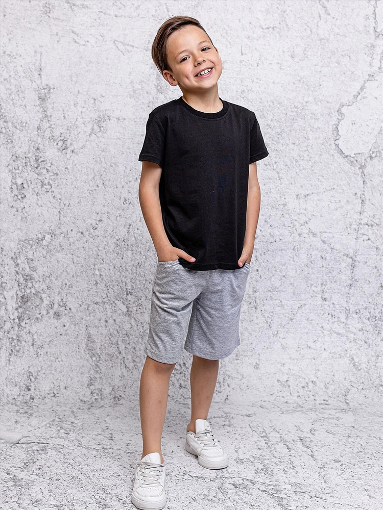 Шорты для мальчика серые трикотажные из супрема. Мягкие и удобные летние шорты прекрасно держат форму, не вытягиваются, не стесняют движений и идеально подходят для занятий спортом и отдыха. Шорты детские являются незаменимым элементом детского летнего гардероба, подойдут для уроков физкультуры и занятий в зале.