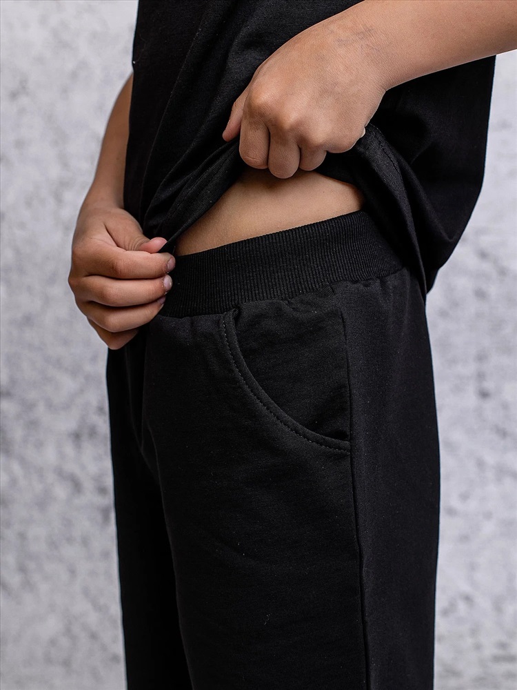 Шорты для мальчика черные с карманами из футера. Детские спортивные шорты оверсайз для детей порадуют каждого ребенка. Шорты для мальчика сшиты из приятной к телу, дышащей ткани футер.