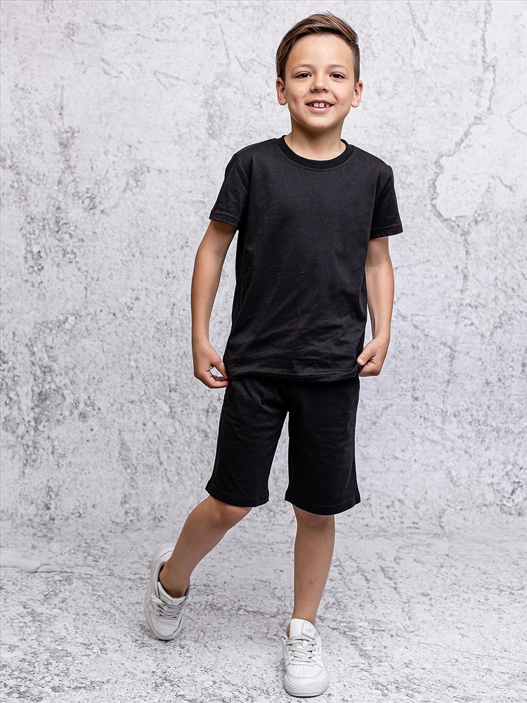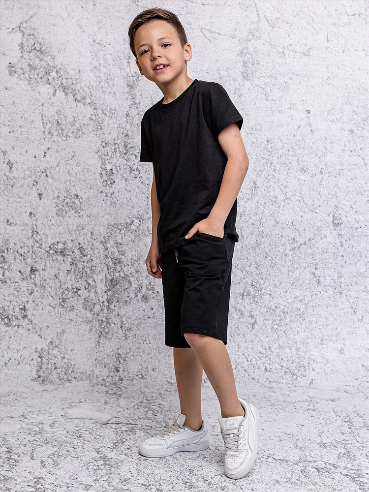 Шорты для мальчика черные трикотажные из супрема. Мягкие и удобные летние шорты прекрасно держат форму, не вытягиваются, не стесняют движений и идеально подходят для занятий спортом и отдыха. Детские шорты являются незаменимым элементом летнего гардероба, подойдут для уроков физкультуры и занятий в зале.