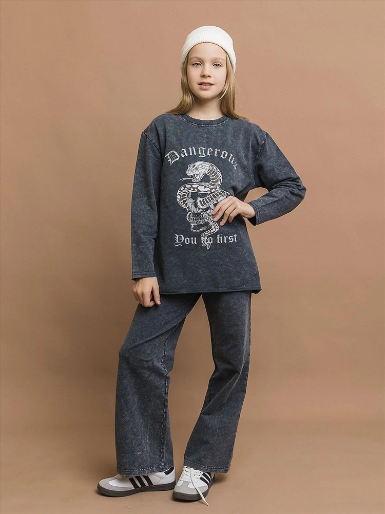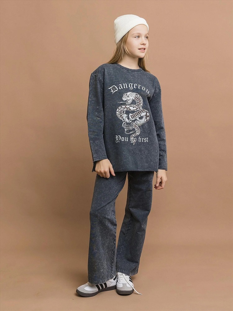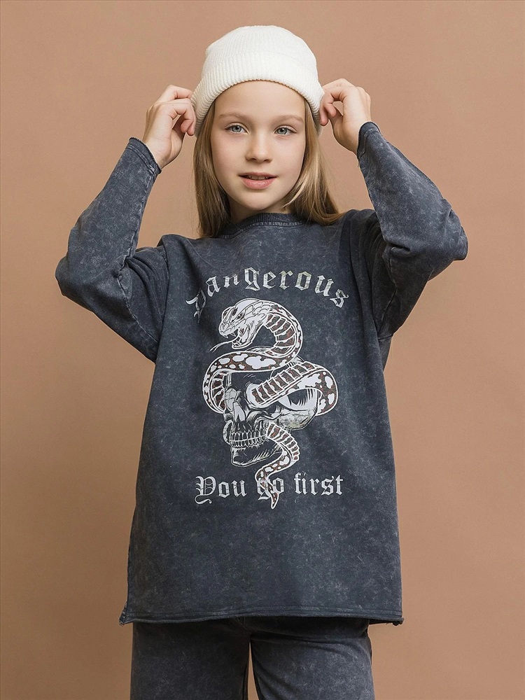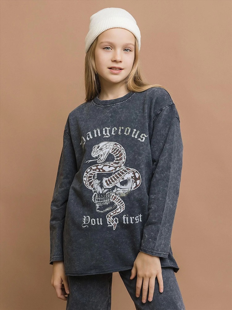 Свитшот трикотажный унисекс из вареного трикотажа в черном цвете с модным принтом. Трендовый оттенок и принт для создания бунтарских образов. Мягкий «вареный» трикотаж – приятная текстура с эффектом легкого винтажа. Идеальная посадка по фигуре, легкий оверсайз. Подходит парням и девушкам, сочетается с джинсами, юбками и спортивными штанами.