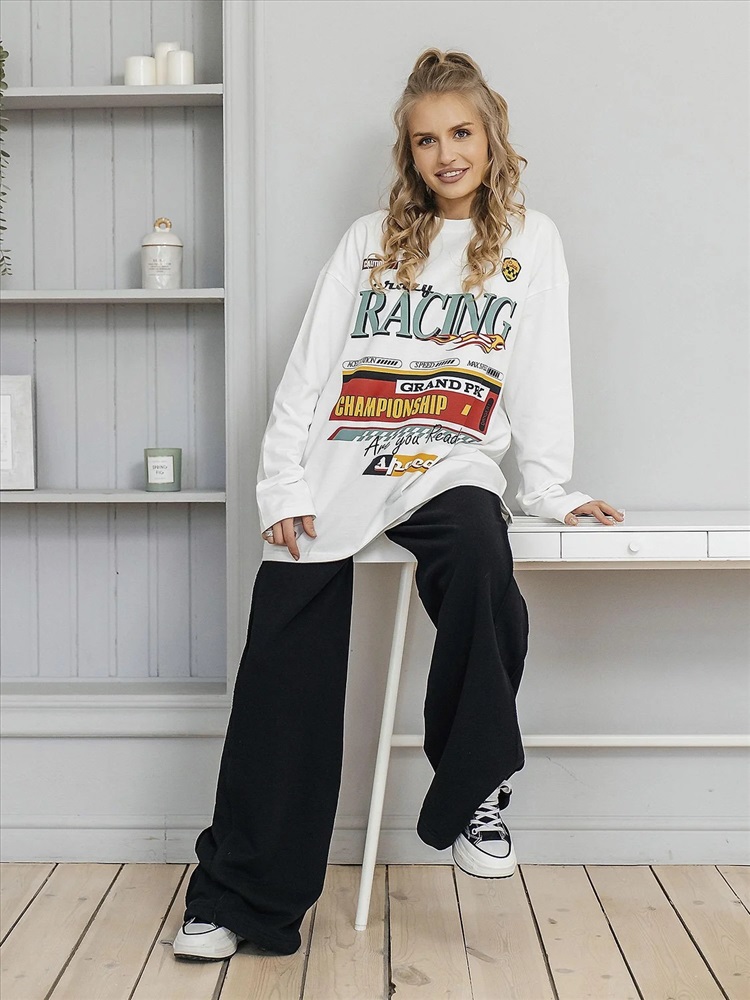 Свитшот (джемпер) из футера 2-х нитки (95% хлопок, 5% эластан). Мягкая и эластичная ткань комфортно прилегает к телу, сохраняет форму после стирки и обеспечивает удобство в течение всего дня. Практичная и универсальная модель для повседневного гардероба. Цвет — молочный.