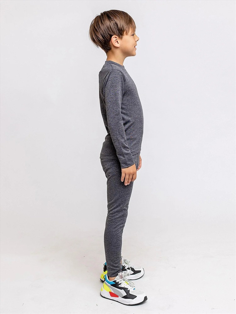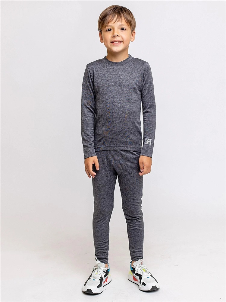 Термобелье двухслойное для детей в темно-серой расцветке. Термобелье от бренда batik создано для того, чтобы ребенку было тепло и комфортно во время игр, прогулок или отдыха дома. Комплект состоит из леггинсов и лонгслива с длинными рукавами.