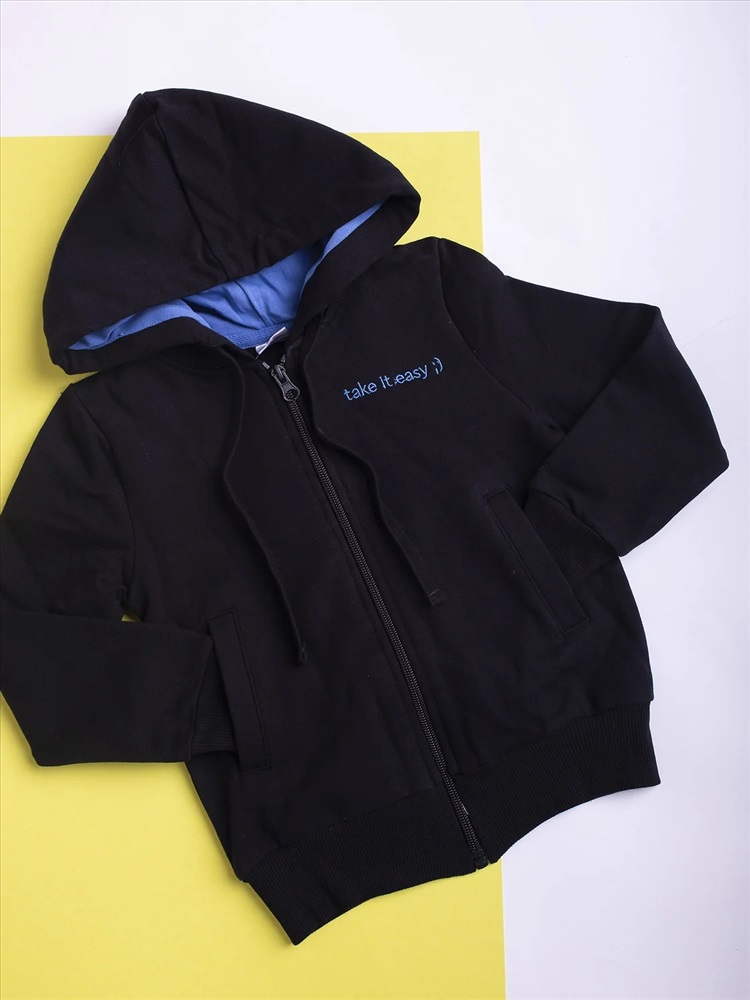 Производитель: BATIK; Российский размер: 98; Артикул поставщика: 02984_BAT; Год: 2025; Страна: Россия Толстовка детская черного цвета с капюшоном и карманами. Застежка-молния по центру, эластичные манжеты рукавов и пояс. Характеристики: * Материал: футер пенье 2х нитка * Состав: 95% хлопок, 5% эластан * Размеры: 98-122 * Производитель: batik
