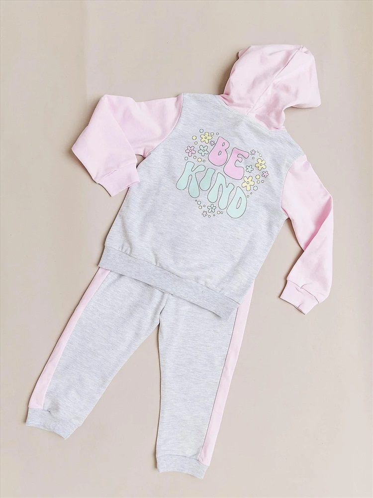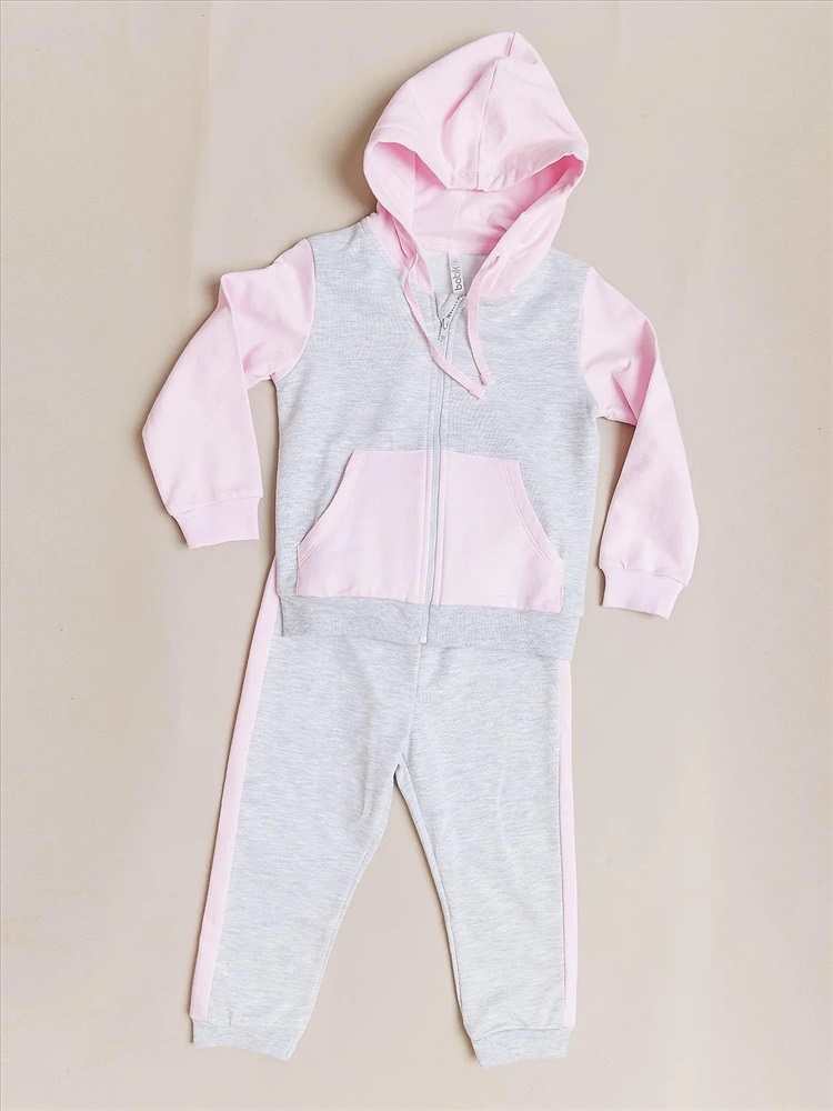Толстовка на молнии для девочки из футера серо-розовая. Стильная детская толстовка с капюшоном - незаменимая вещь для малыша в прохладную погоду. Имеет боковые карманы и эластичные манжета рукавов.