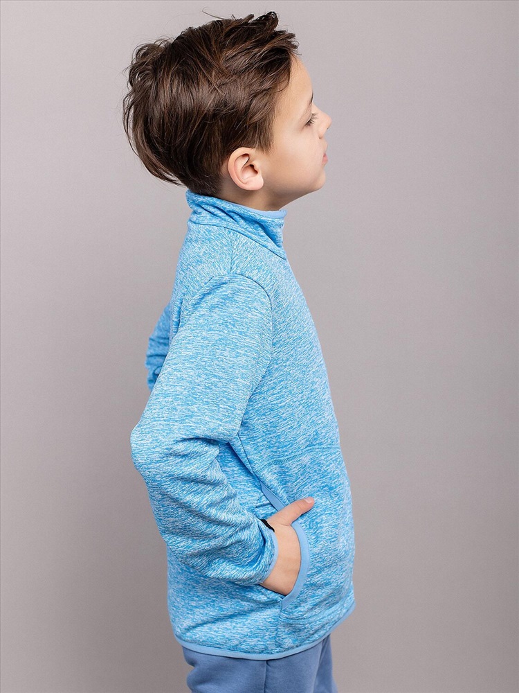 Флисовая толстовка Стюарт на молнии с высоким воротником без капюшона. Голубая кофта из флиса подойдет как мальчикам, так и девочкам. Может носиться в качестве поддевы в холодное время года. Прямой крой.