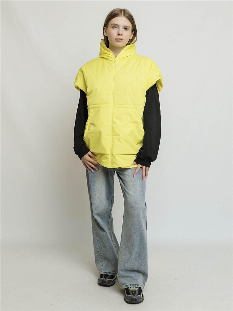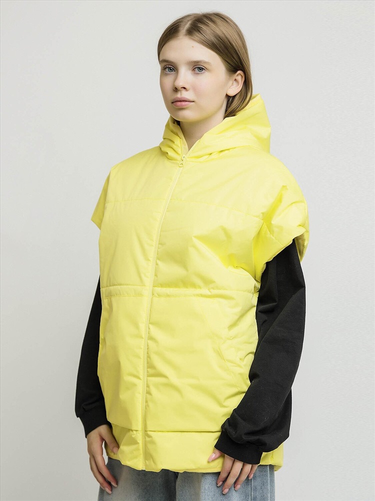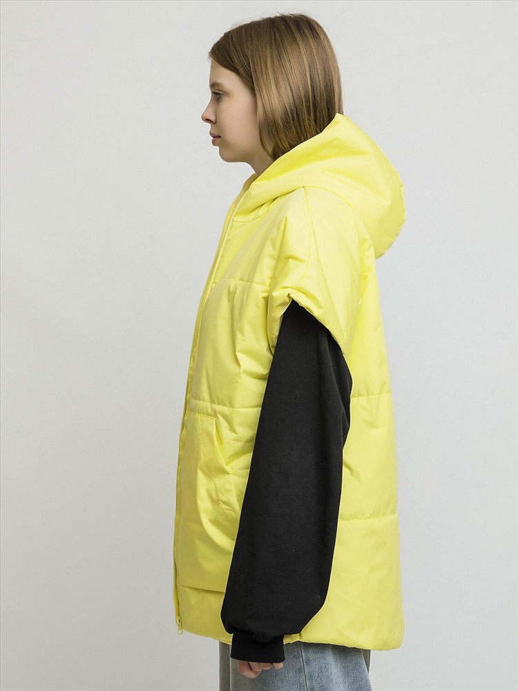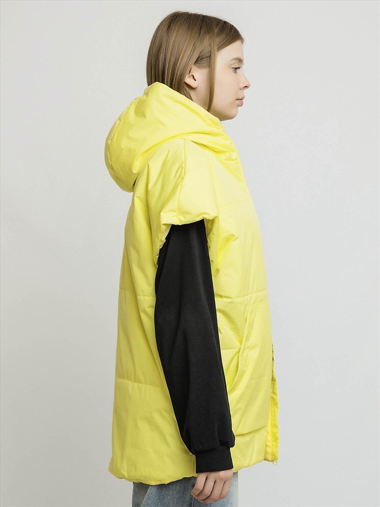 Безрукавка для детей идеальна в качестве верхней одежды на межсезонье. Выполнена в оверсайз стиле, эта вещь сочетает удобство и практичность. Подходит для прогулок, катания на велосипеде и активного отдыха вне стен дома. Жилет уникален своим фигурным кроем, придающим ему особый вид, что привлечёт внимание как ребёнка, так и подростка.