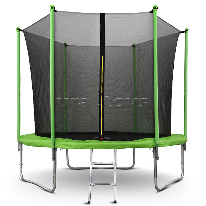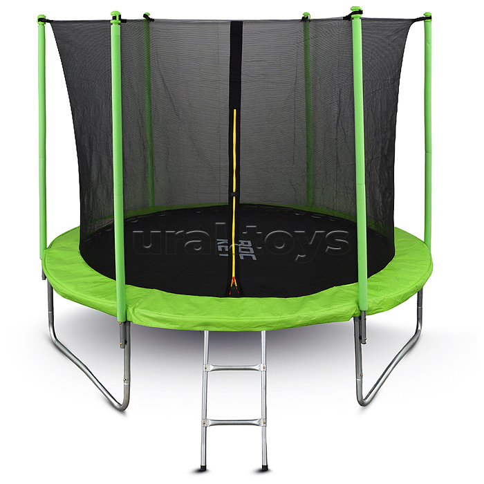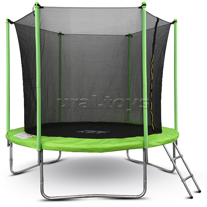 Код: 443275 Штрихкод: 4610264732041 Страна производитель: Китай Размеры упаковки: 128 x 46 x 21 см Количество в коробке: 1 Диаметр батута: 244 см. Диаметр прыжковой поверхности: 217 см. Высота модели: 225 см. Высота от пола до прыжкового полотна: 65 см. Максимальный вес пользователя: 150 кг. Количество пружин: 48. Материал сетки: нейлоновая ткань. Материал мата: полипропилен. Материал рамы: сталь. Вход в сетку закрывается на молнию. Для детей от 6 лет. Комментарии к товару