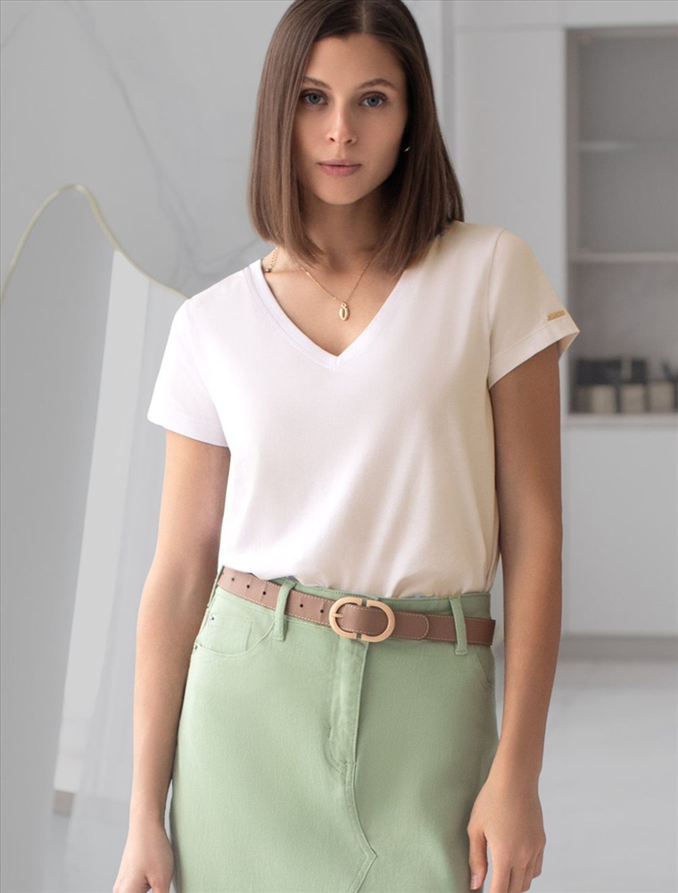 Базовая футболка молочного цвета с V-образным вырезом выполнена из премиального хлопка. Добавление эластана в состав изделия способствует формоустойчивости. Футболка выполнена из качественного натурального материала, отлично сидит по фигуре и подходит для отдыха и работы. Преимущество этой модели - V-образный вырез, который подчеркивает линию шеи и придает внешнему виду элегантность. Такой фасон гармонично вписывается как в классические, так и в современные гардеробы. Декольте делает изделие более женственным и визуально вытягивает силуэт, создавая ощущение легкости. Такая футболка средней длины и классического кроя идеально подойдет под любую одежду. Модель доступна в больших размерах, чтобы каждая женщина могла подчеркнуть свою индивидуальность.