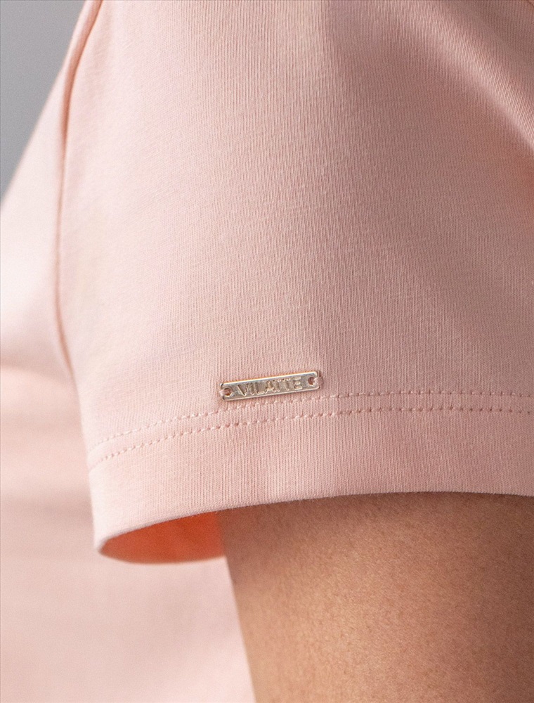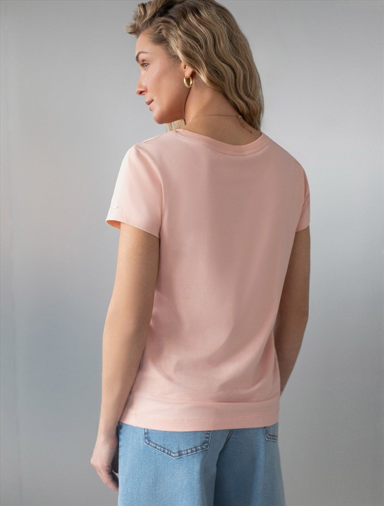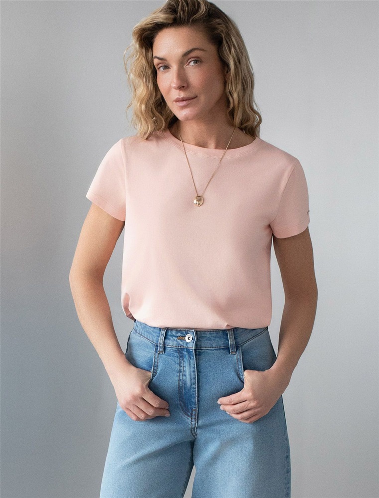 Стильная и модная женская футболка пудрового цвета станет отличным дополнением к вашему гардеробу. Футболка плотностью 170 Г/м2 изготовлена из премиального хлопка с добавлением эластана. Добавление эластана в состав изделия способствует формоустойчивости. Эта классическая футболка подходит для создания кэжуал образа на каждый день и идеально подойдет для работы. Модель не мнется, что делает ее практичным вариантом для активных женщин, которые ценят стиль и удобство. Благодаря однотонной расцветке эта футболка легко комбинируется с различными элементами гардероба. Она станет универсальным решением для тех, кто предпочитает комфортный стиль casual. Повседневная футболка подчеркнет вашу индивидуальность и позволит вам выглядеть привлекательно в любой ситуации. Легкость в уходе и высокая износостойкость делают ее незаменимой вещью в вашем гардеробе. Одевайте эту модель как на работу, так и на встречу с друзьями — она всегда будет уместна! Стильная и практичная модель с простым кроем и лаконичным дизайном - идеальный вариант для тех, кто ценит качество, минимализм и классический стиль в одежде.