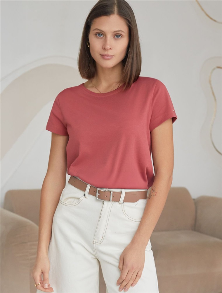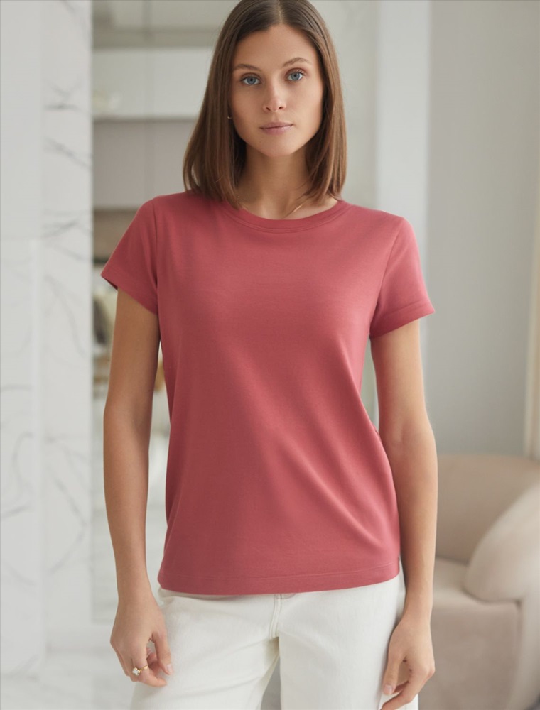 Стильная и модная женская футболка темно-кораллового цвета станет отличным дополнением к вашему гардеробу. Футболка плотностью 170 Г/м2 изготовлена из премиального хлопка с добавлением эластана. Добавление эластана в состав изделия способствует формоустойчивости. Эта классическая футболка подходит для создания кэжуал образа на каждый день и идеально подойдет для работы. Модель не мнется, что делает ее практичным вариантом для активных женщин, которые ценят стиль и удобство. Благодаря однотонной расцветке эта футболка легко комбинируется с различными элементами гардероба. Она станет универсальным решением для тех, кто предпочитает комфортный стиль casual. Повседневная футболка подчеркнет вашу индивидуальность и позволит вам выглядеть привлекательно в любой ситуации. Легкость в уходе и высокая износостойкость делают ее незаменимой вещью в вашем гардеробе. Одевайте эту модель как на работу, так и на встречу с друзьями — она всегда будет уместна! Стильная и практичная модель с простым кроем и лаконичным дизайном - идеальный вариант для тех, кто ценит качество, минимализм и классический стиль в одежде.