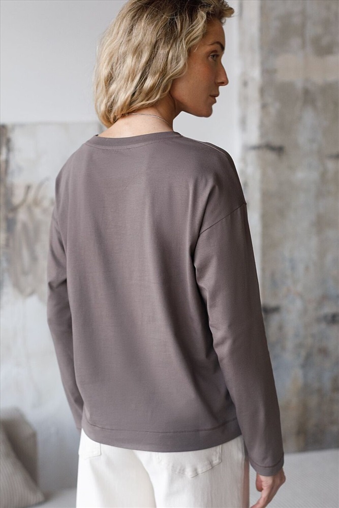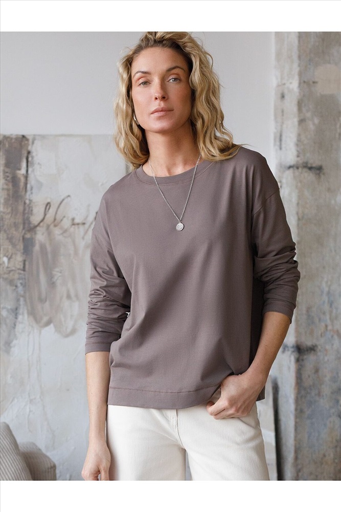 Свободный лонгслив кофейного цвета с длинным рукавом выполнен из премиального хлопка с добавлением эластана, что обеспечивает комфорт и приятные тактильные ощущения. Однотонная расцветка и круглый ворот создают стильный и универсальный образ, который подойдет для повседневного использования. Спущенная линия плеча придает лонгу современный и расслабленный силуэт. Такой лонгслив идеально подходит для весеннего и летнего сезона благодаря легкой и дышащей ткани. Большие размеры позволяют выбрать оптимальный вариант на любую фигуру, обеспечивая свободу движений и удобство на каждый день. Этот комфортный лонгслив станет отличной базой в гардеробе, сочетаясь с различными стилями одежды и создавая простой, но эффектный образ.