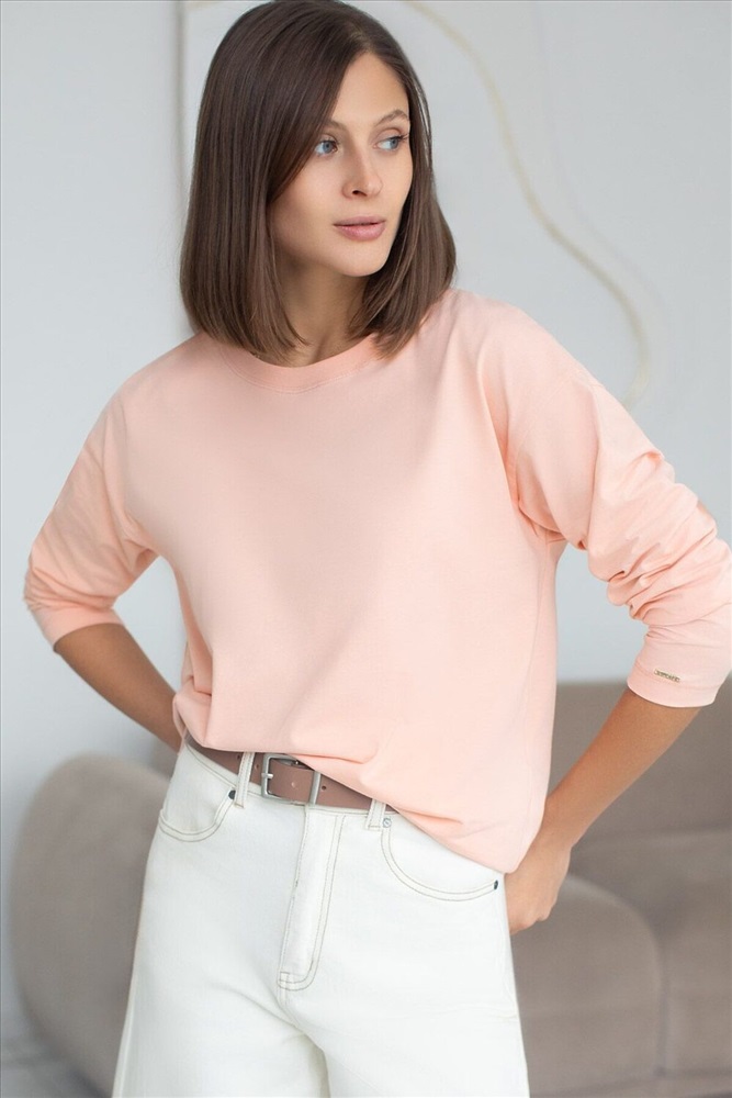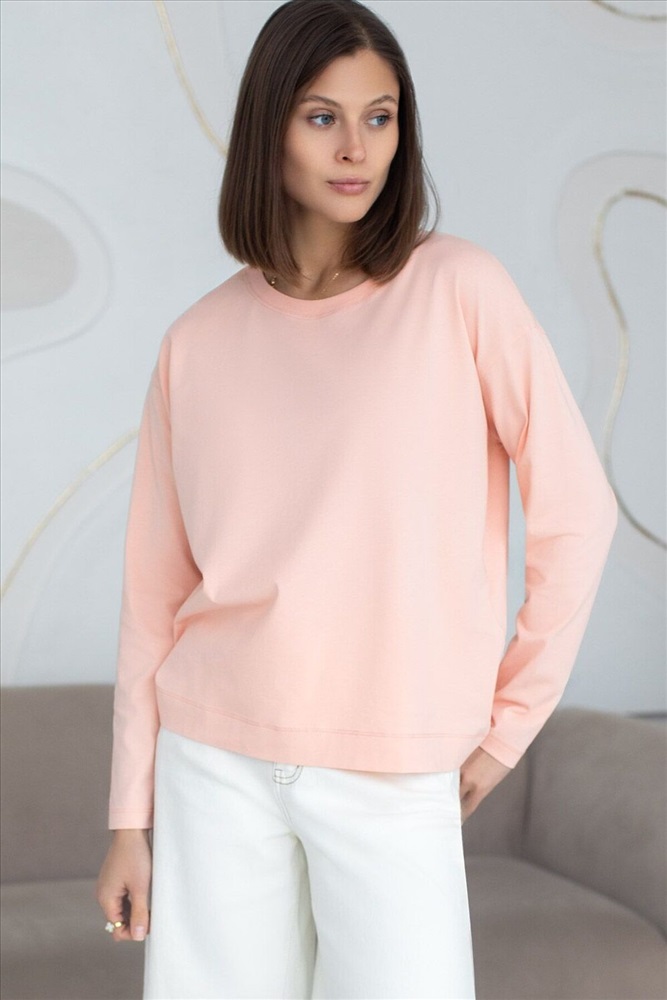 Свободный лонгслив пудрового цвета с длинным рукавом выполнен из премиального хлопка с добавлением эластана, что обеспечивает комфорт и приятные тактильные ощущения. Однотонная расцветка и круглый ворот создают стильный и универсальный образ, который подойдет для повседневного использования. Спущенная линия плеча придает лонгу современный и расслабленный силуэт. Такой лонгслив идеально подходит для весеннего и летнего сезона благодаря легкой и дышащей ткани. Большие размеры позволяют выбрать оптимальный вариант на любую фигуру, обеспечивая свободу движений и удобство на каждый день. Этот комфортный лонгслив станет отличной базой в гардеробе, сочетаясь с различными стилями одежды и создавая простой, но эффектный образ.