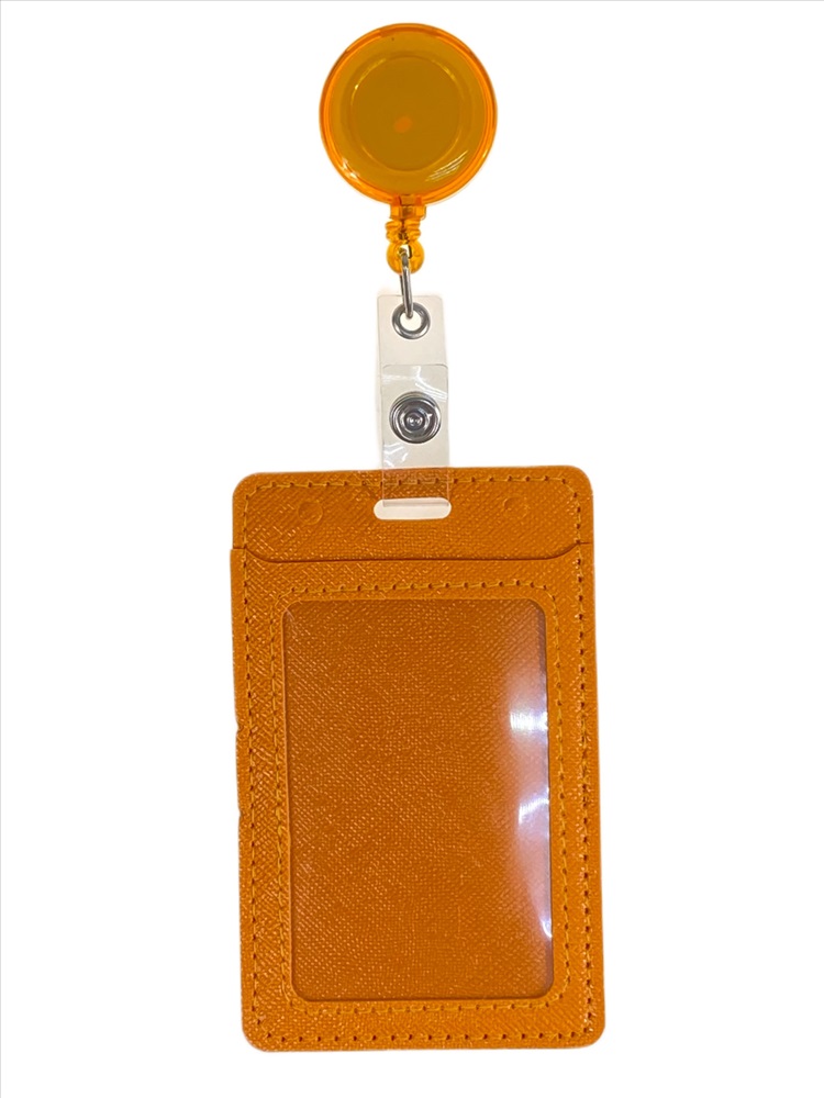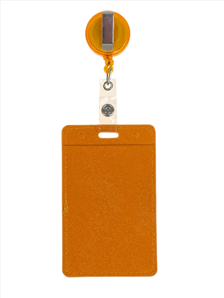 Бейдж с лентой на рулетке вертикальный, цвет оранжевый