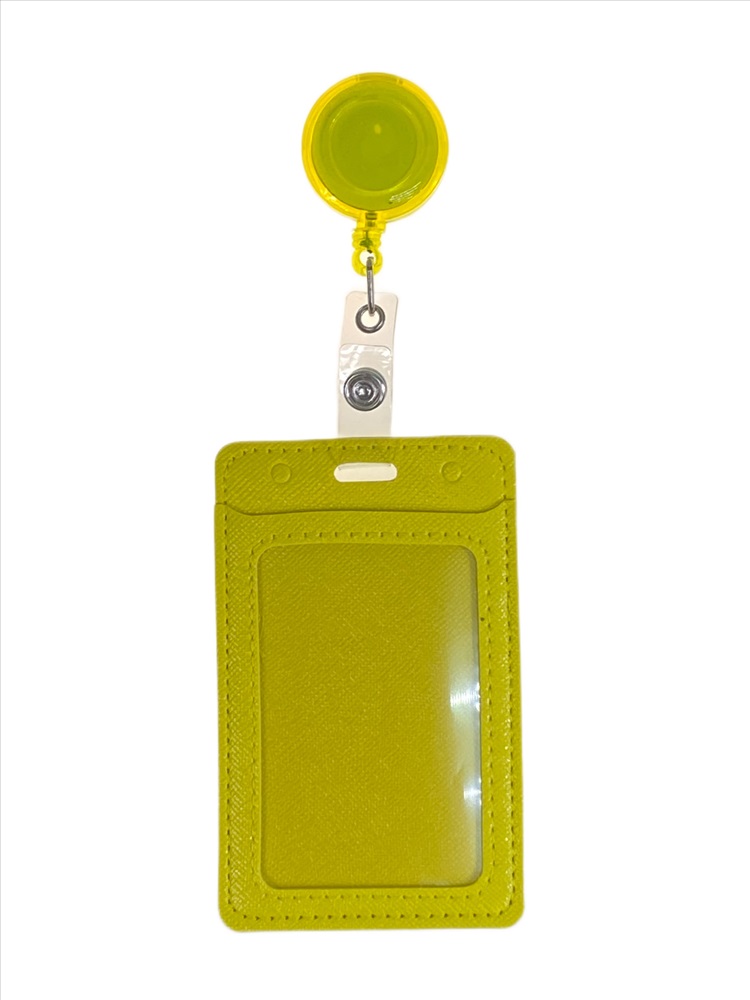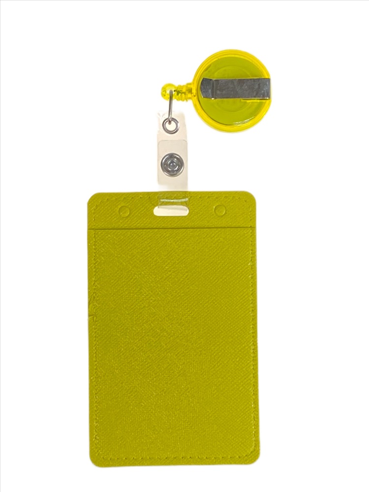 Бейдж с лентой на рулетке вертикальный, цвет желтый