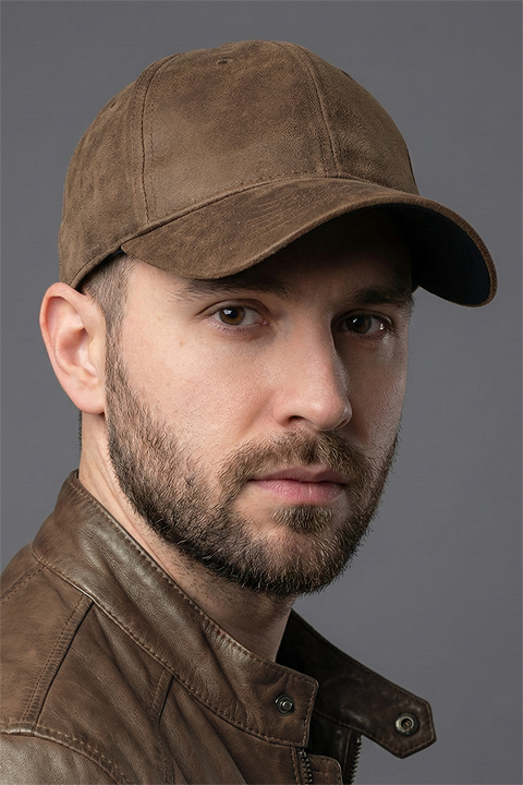 Бейсболка 6-клинка из плотной ткани под кожу, с мягкой формой в лобовой части.