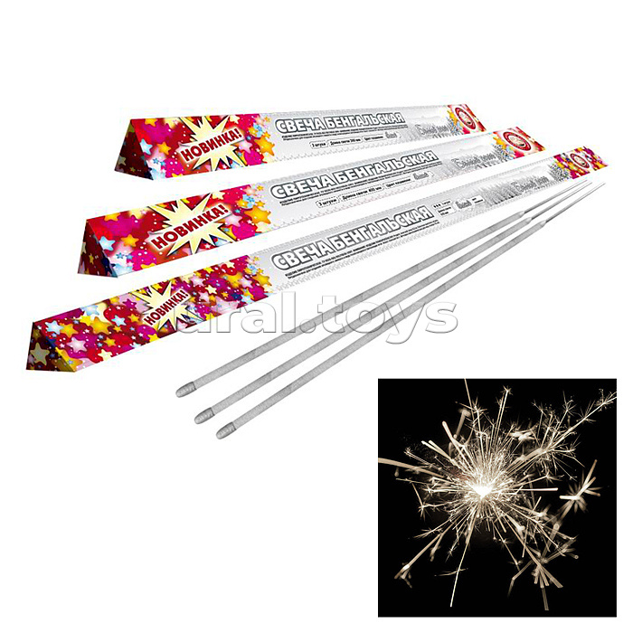 • Время работы ~ 180 секунд. • В упаковке: 3 шт. • Длина свечи: 400 мм. • Список эффектов: - Белые искры.