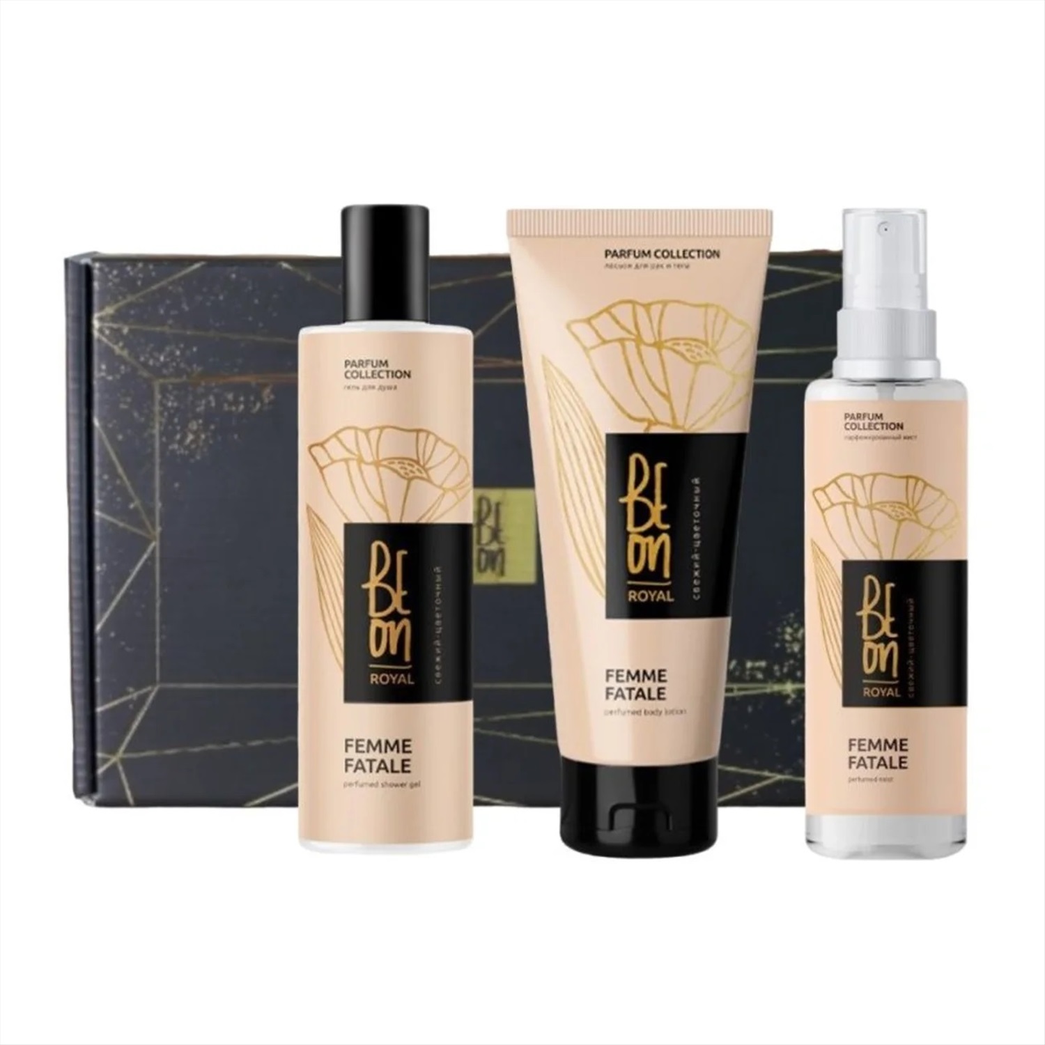 Эксклюзивный уход и благородные ароматы нишевой парфюмерии. Подарочный набор натуральной косметики BEON ROYAL бьюти бокс включает в себя увлажняющий гель для душа 260 мл, питательный лосьон для рук и тела 200 мл и парфюмированный мист. Набор профессиональной косметики отлично подойдёт в качестве подарка для девушки или близкого человека.
