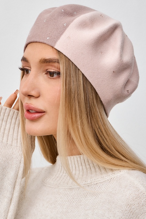 Берет одинарный с подворотом внутрь на 6,5 см, диаметр 27 см. Вязка плотная, гладкая. Размер: 56-58. Состав: 5% кашемир, 50% вискоза, 25% нейлон, 20% полиэстер. Производство: Россия.