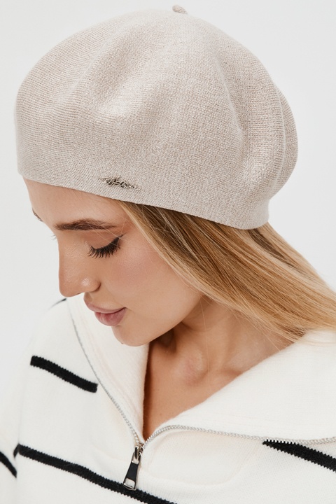 Берет одинарный с подворотом внутрь на 6 см, диаметр 27 см. Размер: 56-58. Состав: кашемир 5%, вискоза 50%, нейлон 25%, полиэстер 20%, нить люрекса. Производство: Россия.