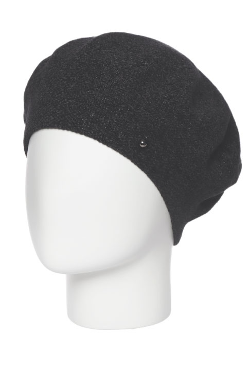 Берет мягкий одинарный с подворотом внутрь 7 см, диаметр 26 см. Размер: 56-58. Состав: шерсть мериноса 20%, вискоза 40%, нейлон 40%, нить люрекса. Производство: Россия.
