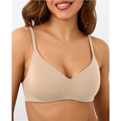 Бесшовный бюстгальтер из мягкого эластичного полотна. Модель обеспечивает надежную поддержку груди и комфорт на протяжении всего дня. Бюстгальтер не содержит косточек, а отсутствие швов позволяет бюстгальтеру оставаться практически незаметным под любой одеждой. Тонкие регулируемые бретели, застежка на 2 крючка позволяют регулировать объем и нагрузку для оптимальной посадки. Состав: 75% Полиамид, 25% эластан.