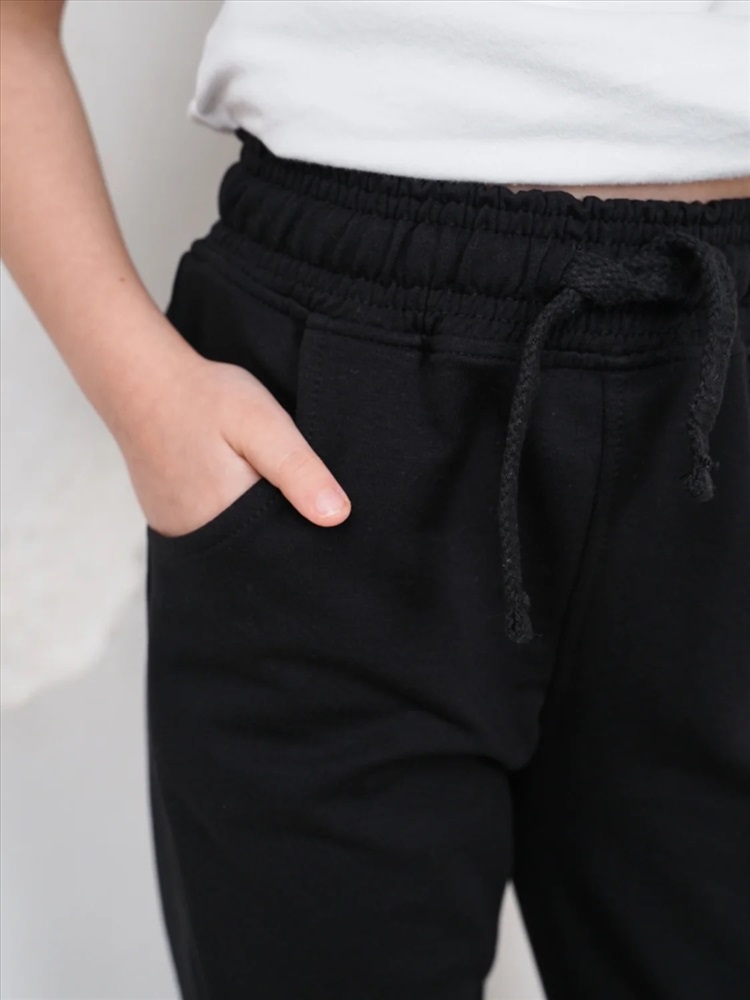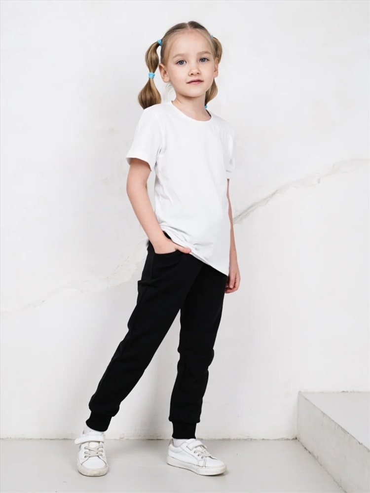 Трикотажные брюки для мальчиков и девочек. Притачной пояс на кулиске усилен эластичной тесьмой. Внутренние карманы в боковых швах с удобным для детской ладошки закругленным входом. Штаны на манжетах.