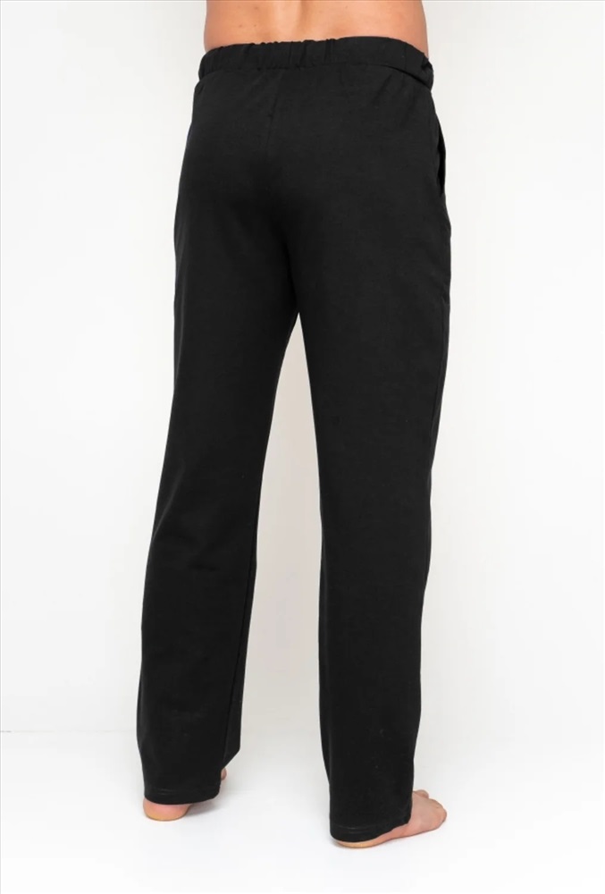 Мужские спортивные брюки, полуприлегающего силуэта с кулиской на поясе. На брюках имеются два кармана с отрезным бочком.