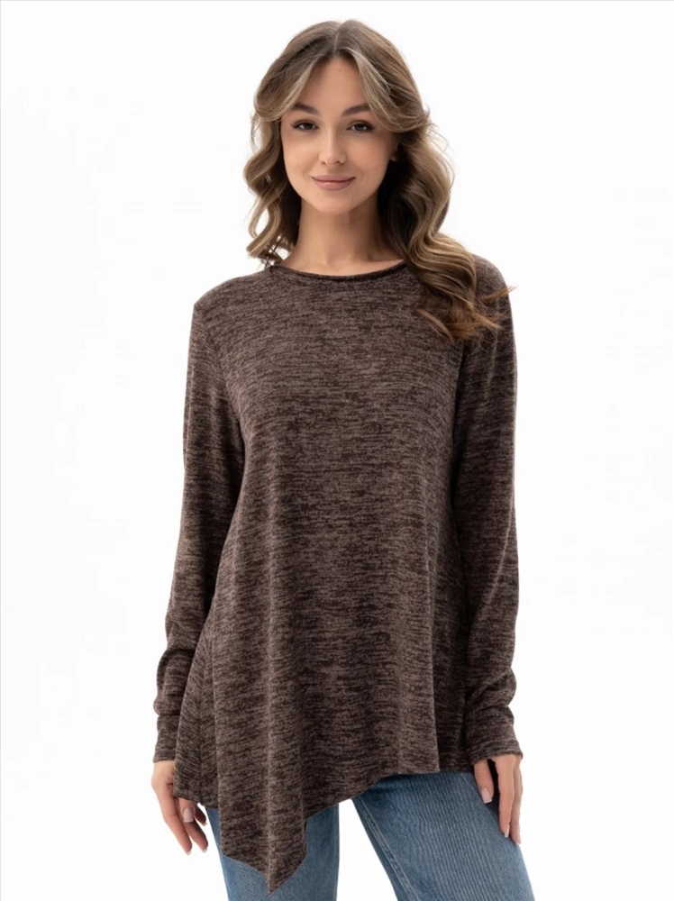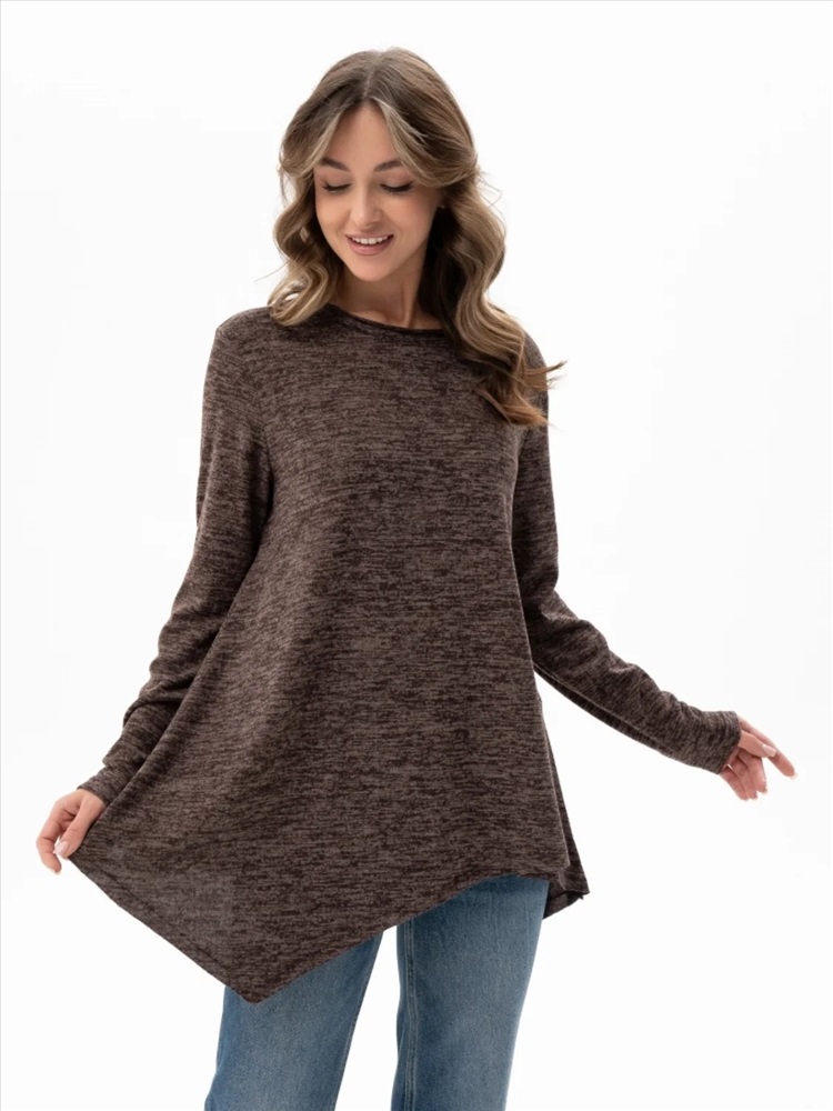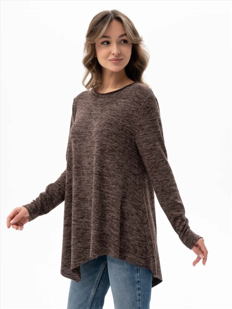 Стильный женский джемпер выполнен из мягкой ткани, которая не колется, не мнется и не образует катышков, что гарантирует комфорт и долговечность. Модель выделяется оригинальной необработанной горловиной и расклешенным низом, что создаёт свободный и женственный силуэт. Этот джемпер станет универсальной и стильной базой для вашего гардероба, легко комбинируясь с различными элементами одежды.