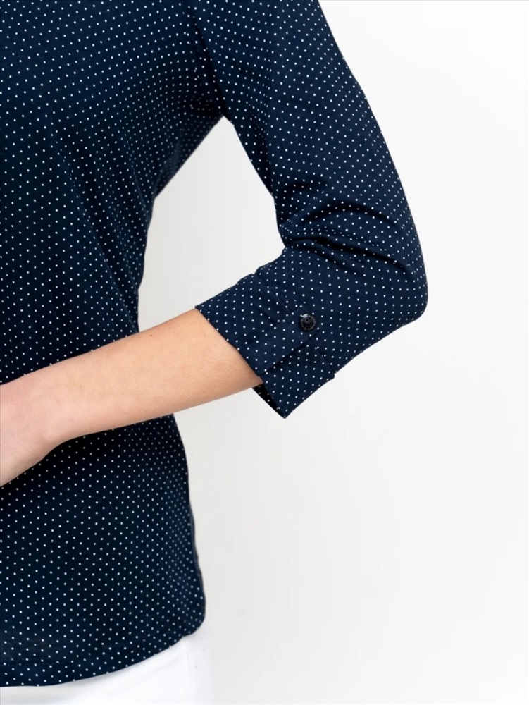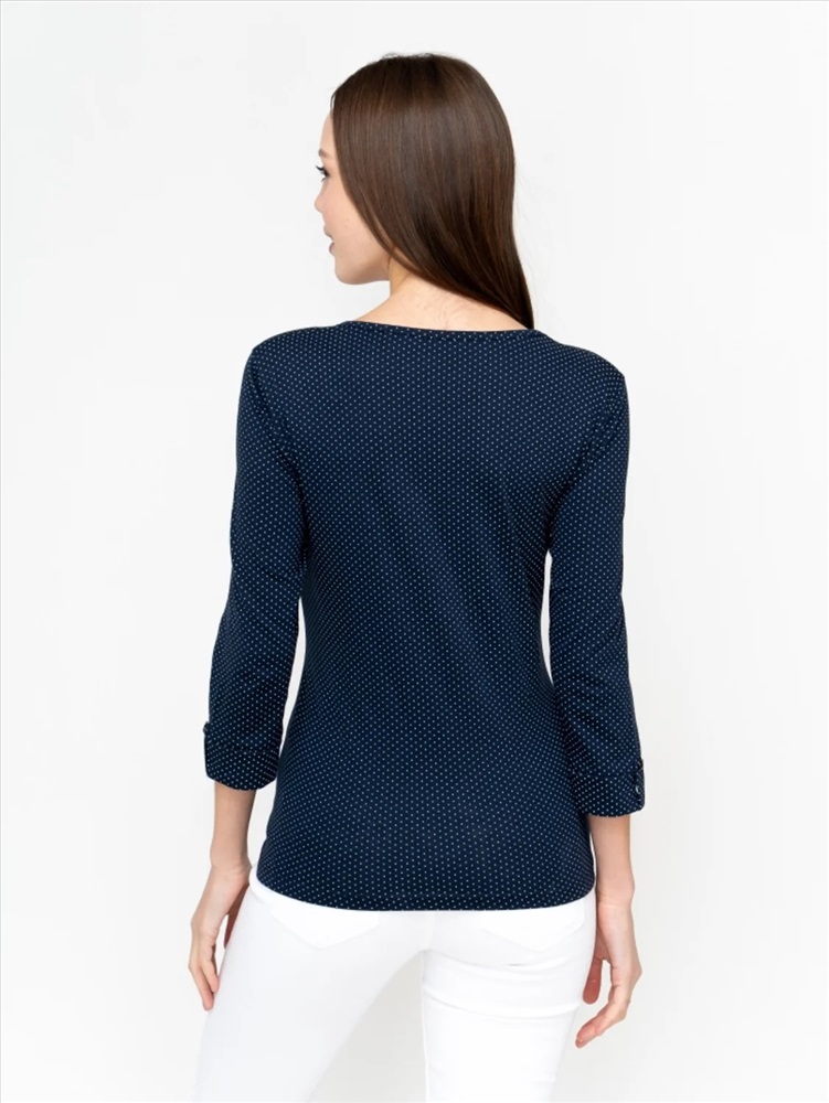 Втачные рукава ¾ на манжетах украшены патами.