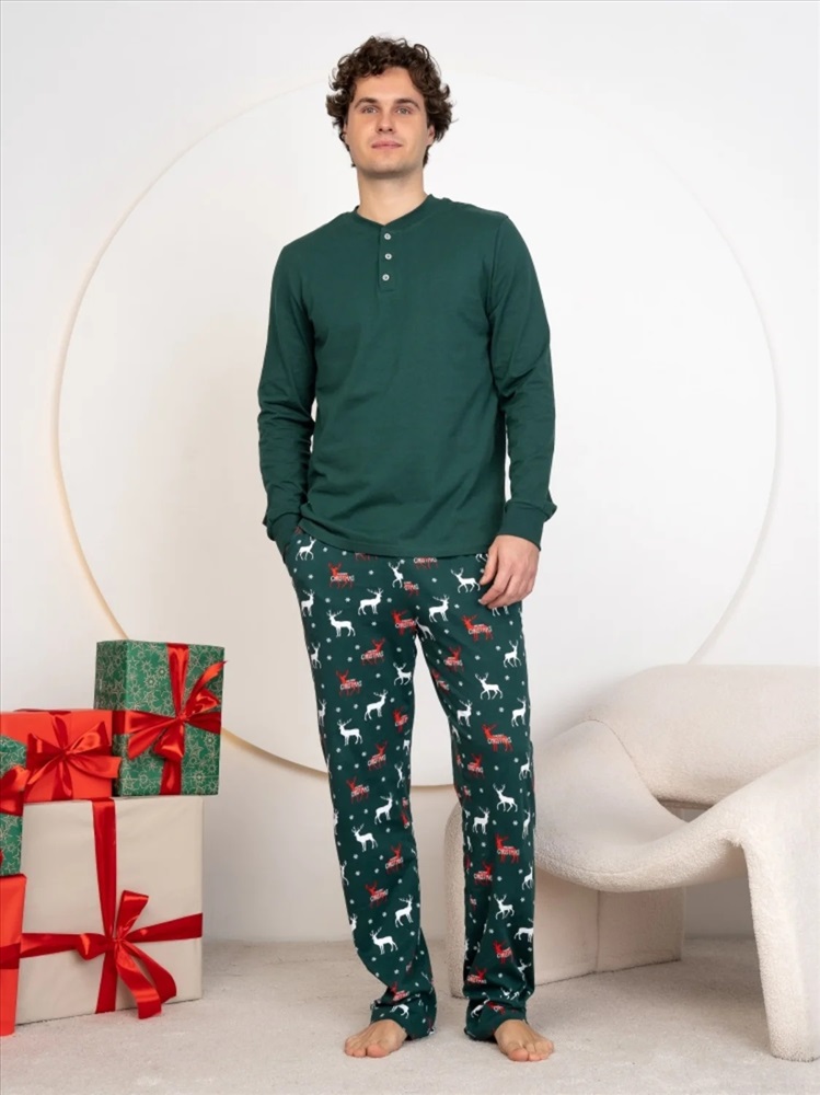 Представляем вам комплект мужской с новогодним принтом, выполненный из 100% хлопка. Эта пижама не только обеспечивает комфортный сон, но и создает праздничное настроение в зимние вечера. Яркий и стильный новогодний дизайн станет отличным дополнением вашего гардероба. Идеально подходит в качестве подарка на Новый год для любимого человека, друга или родственника. Убедитесь, что ваши праздники будут по-настоящему уютными с этой замечательной пижамой!