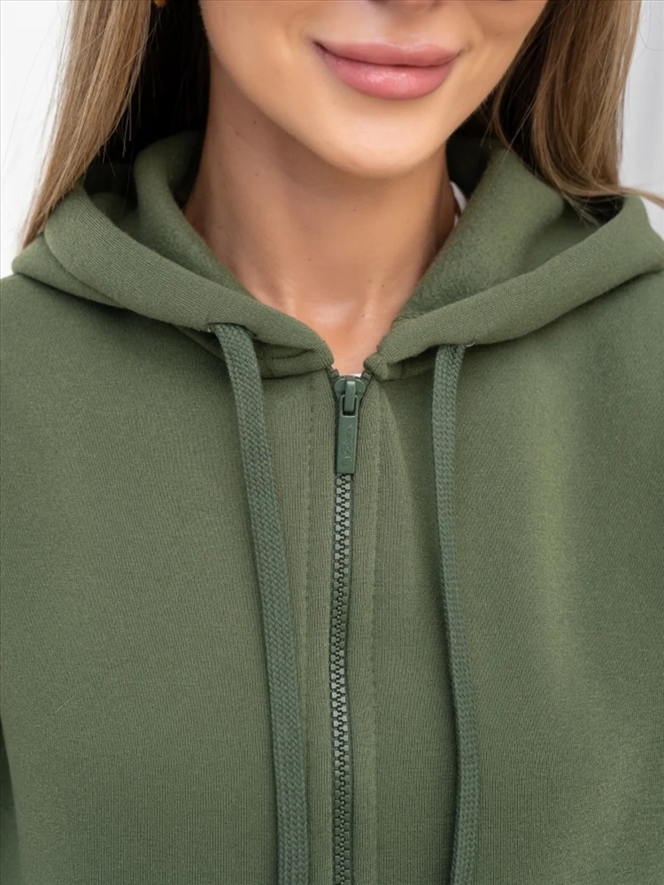 Толстовка с большим капюшоном с декоративным шнуром и карманами «кенгуру» из трикотажа с теплым начесом согреет в холода. Капюшон можно эффектно надеть на голову тем юным модницам, которые не хотят носить шапки.Толстовка с цельнокроеными рукавами и капюшоном застегивается на молнию. Накладные карманы «кенгуру». Рукав и низ изделия на манжетной резинке.