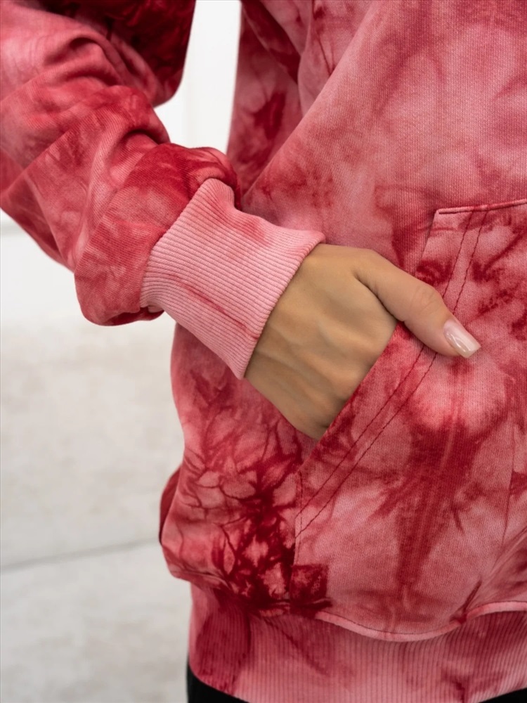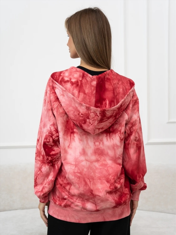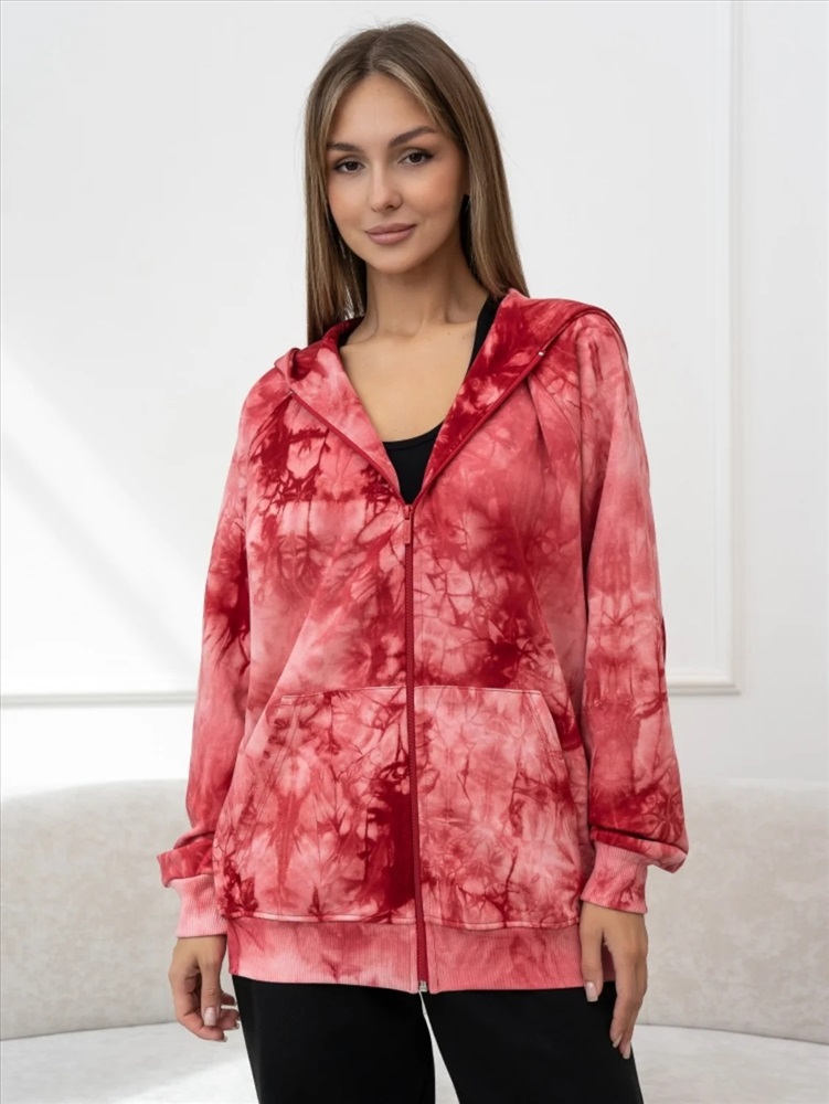 Женская толстовка тай-дай из 100% хлопка — мягкая и дышащая, с уникальным узором. Модель с карманами кенгуру и глубоким капюшоном, аккуратными швами и плотными манжетами. Идеальна для повседневной носки, прогулок и расслабленного образа, легко комбинируется с джинсами, леггинсами или юбкой и подходит как для прохладной погоды, так и для многослойных образов.