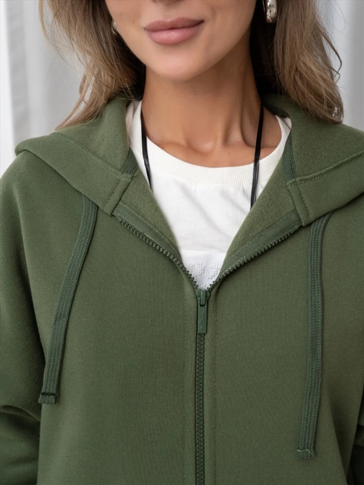 Толстовка с большим капюшоном с декоративным шнуром и карманами «кенгуру» из трикотажа с теплым начесом согреет в холода. Капюшон можно эффектно надеть на голову тем юным модницам, которые не хотят носить шапки.Толстовка с цельнокроеными рукавами и капюшоном застегивается на молнию. Накладные карманы «кенгуру». Рукав и низ изделия на манжетной резинке.