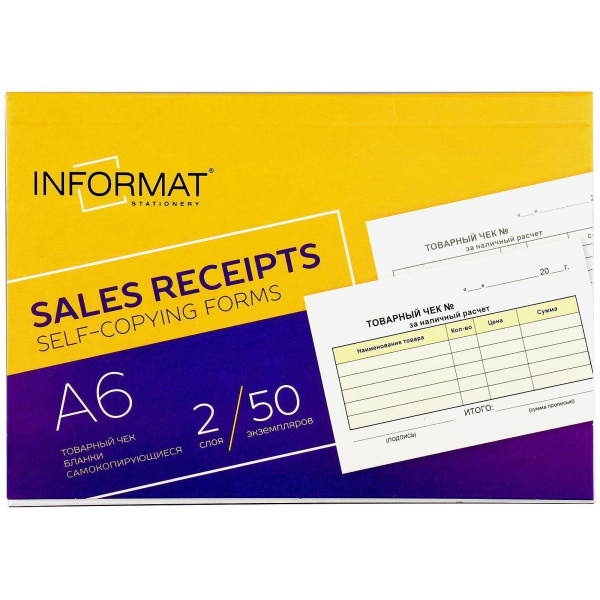 наличный расчет. В наборе 50 комплектов самокопирующихся бланков, выполненных из высококачественной офсетной