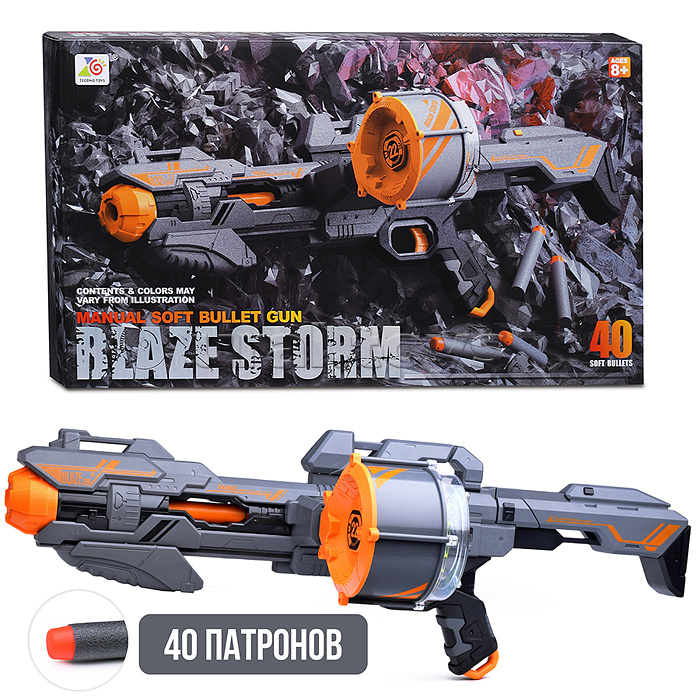 Код: 458625 Страна производитель: Китай Размеры упаковки: 30.8 x 53.6 x 13.2 см Количество в коробке: 6 • Размеры игрушки: 67х26х20 см. • Пневматический механизм стрельбы (ручная перезарядка). • Материал: пластик. • В комплекте: - 40 мягких пуль с резиновым наконечником. • Соответствует требованиям безопасности и стандартам качества продукции. • Для детей от 8 лет. Комментарии к товару