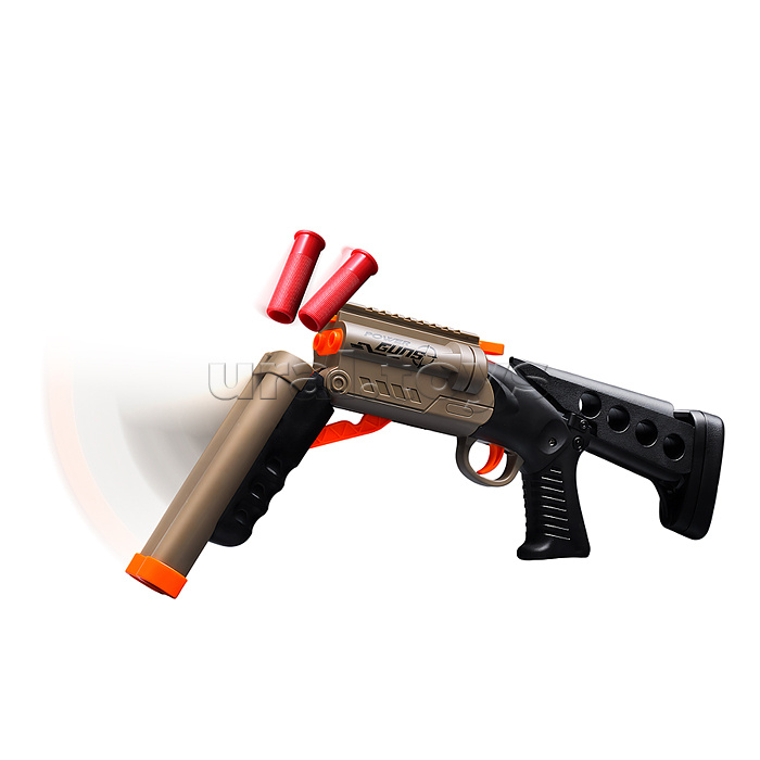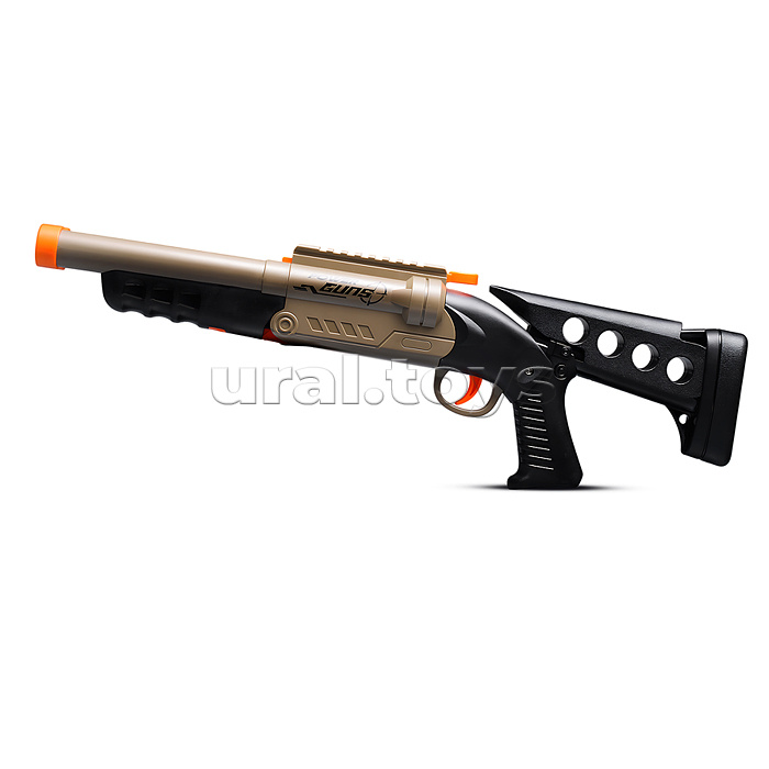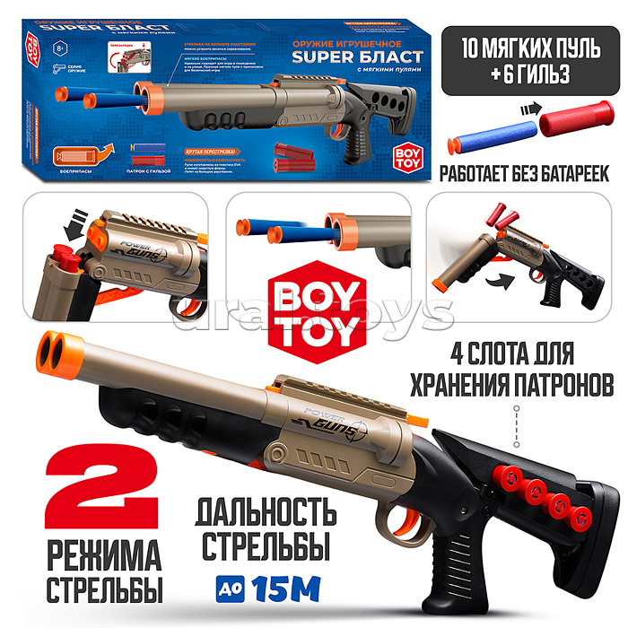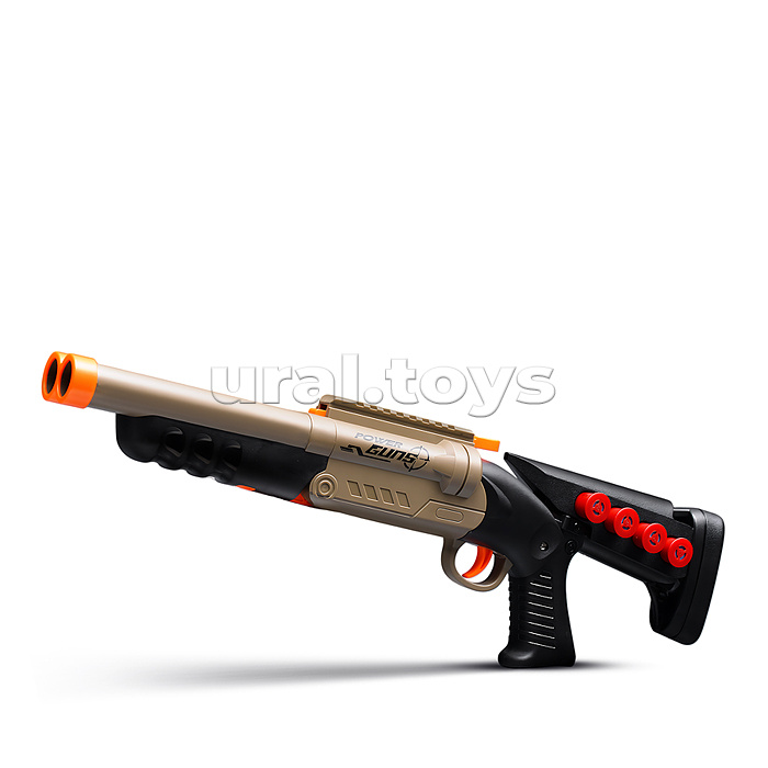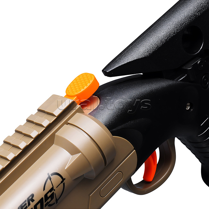 Размеры игрушки: 51 х 6 х 15 см. Пневматический механизм стрельбы. Ручная перезарядка. При перезарядке вылетают гильзы. Материал: пластик. В комплекте: - 10 мягких пуль с присосками. - 6 пластиковых гильз. Соответствует требованиям безопасности продукции. Для детей от 8 лет.