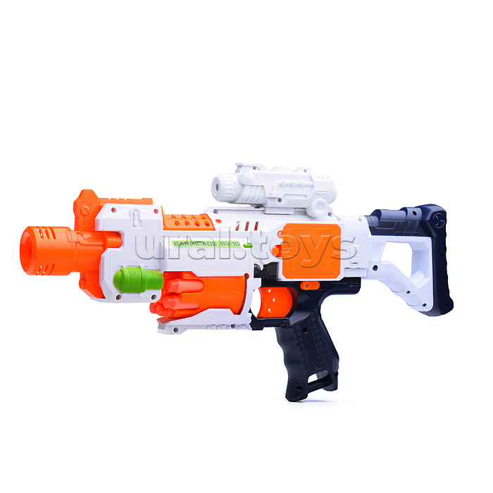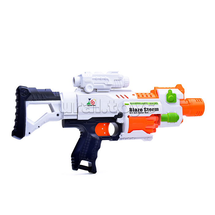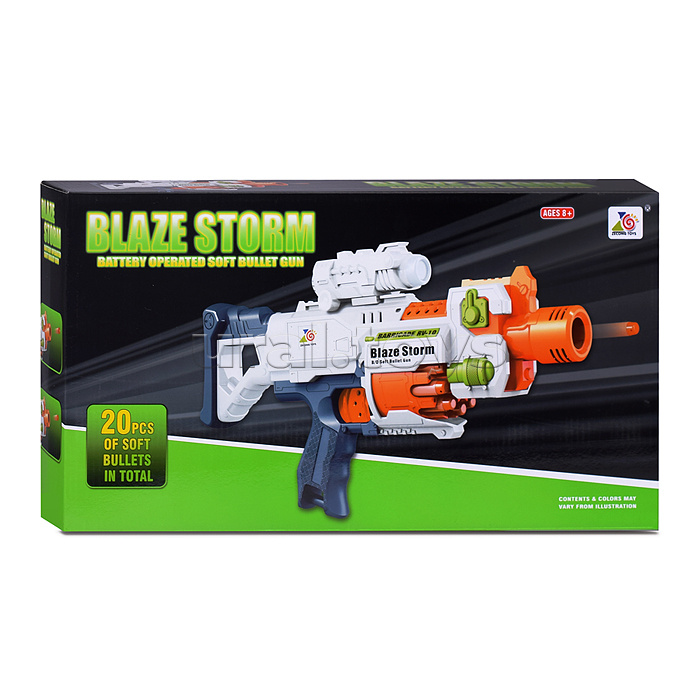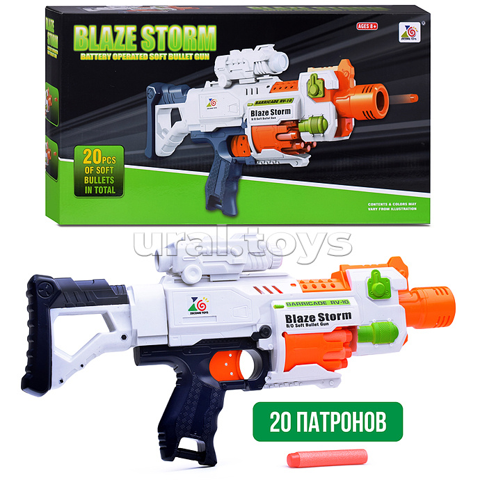 • В наборе: - пистолет (43*7*22 см.) - 20 патронов для автомата (10 с присоской, 10 без) Работает от батареек 3 шт типа "АА" ( в комплект не входят) • Материал: пластик, ЭВА. • Соответствует требованиям безопасности продукции. • Для детей от 6 лет.