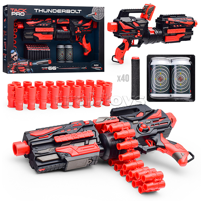 • Размеры игрушки: 45х6х24 см. • Пневматический механизм стрельбы. • Функции: - при нажатии кнопки на рукояти, работает мотор. - при нажатии на спусковой крючок. вылетает пуля. • Работает от 6 батареек "АА" (не входят в комплект) • Материал: пластик. • В комплекте: - 40 мягких пуль с резиновым наконечником. - 2 пластиковые мишени (4.5х4.5х9 см.) - пулемётная лента (20 пуль) • Соответствует требованиям безопасности и стандартам качества продукции. • Для детей от 8 лет.