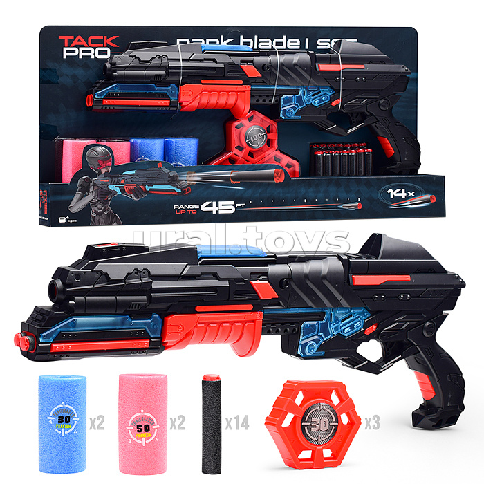 Код: 485991 Штрихкод: 6904110887633 Страна производитель: Китай Размеры упаковки: 59 x 7 x 29 см Количество в коробке: 12 • Размеры игрушки: 50х5х21 см. • Пневматический механизм стрельбы. • Ручная перезарядка. • При нажатии на спусковой крючок, мигают лампочки в корпусе. • Свет работает от 3-х батареек "АА" (не входят в комплект) • Материал: пластик. • В комплекте: - 14 мягких пуль с резиновым наконечником. - пластиковая мишень (14х2х15 см.) - 4 поролоновые мишени (4.5х4.5х9.5 см.) • Соответствует требованиям безопасности и стандартам качества продукции. • Для детей от 8 лет. Комментарии к товару