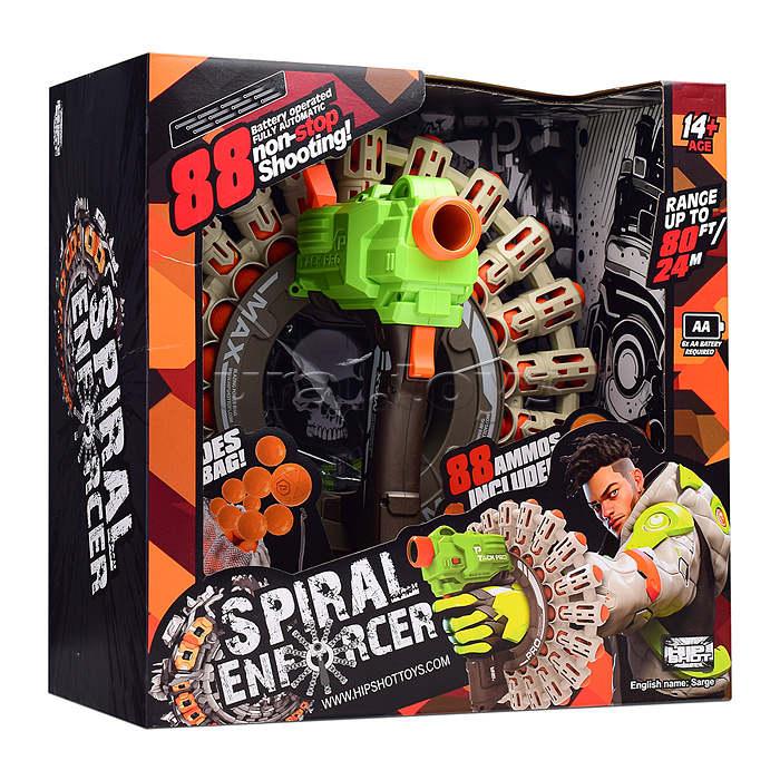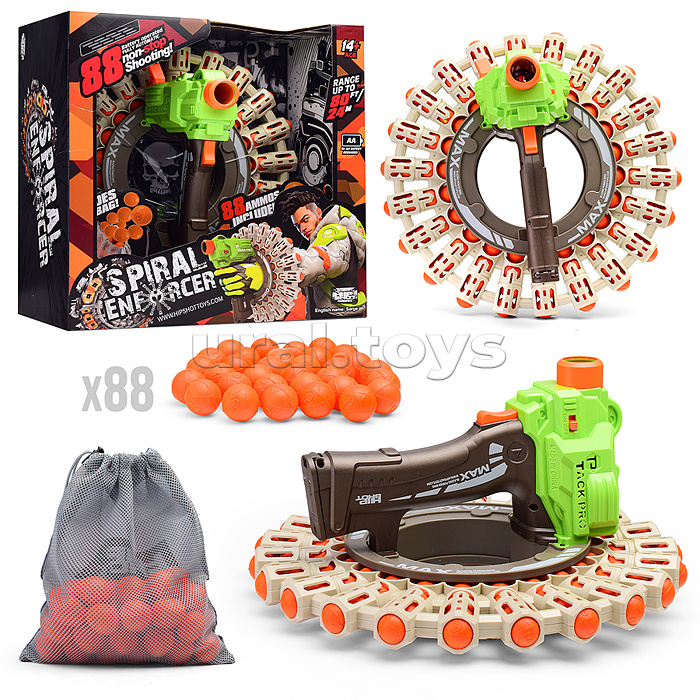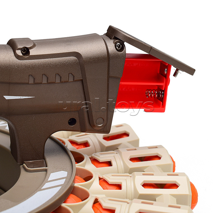 • Размеры игрушки: 33х17х33 см. • Пневматический механизм стрельбы. • Работает от 6 батареек "АА" (не входят в комплект) • Материал: пластик. • В комплекте 88 мягких шариков. • Соответствует требованиям безопасности и стандартам качества продукции. • Для детей от 14 лет.